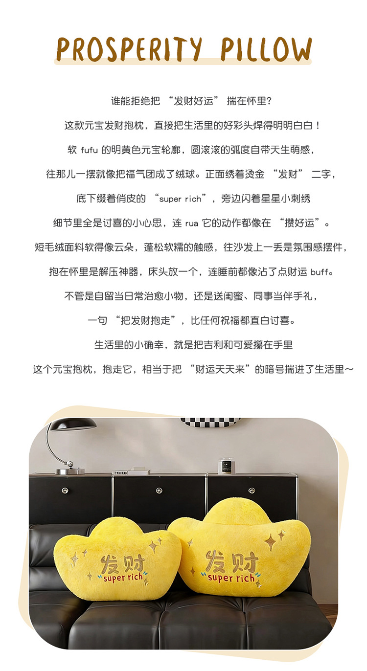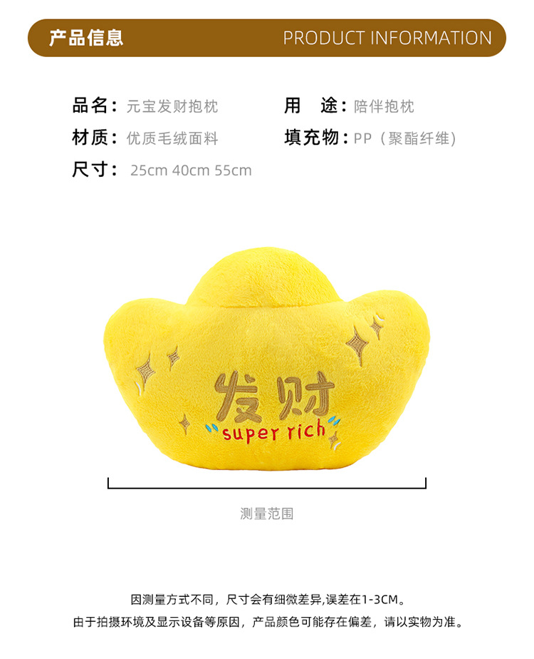 招财进宝毛绒玩具仿真金元宝公仔仿真玩偶毛绒玩具娃娃创意靠垫