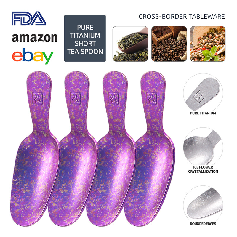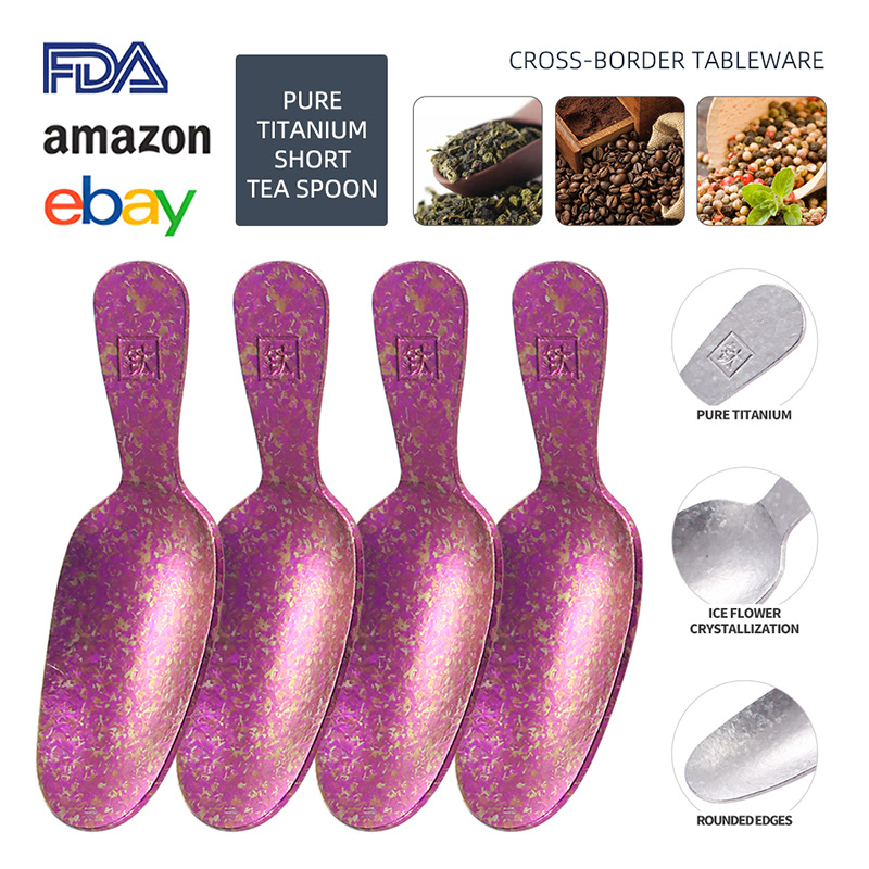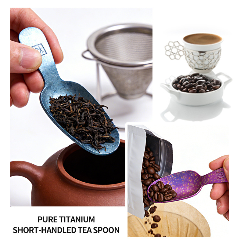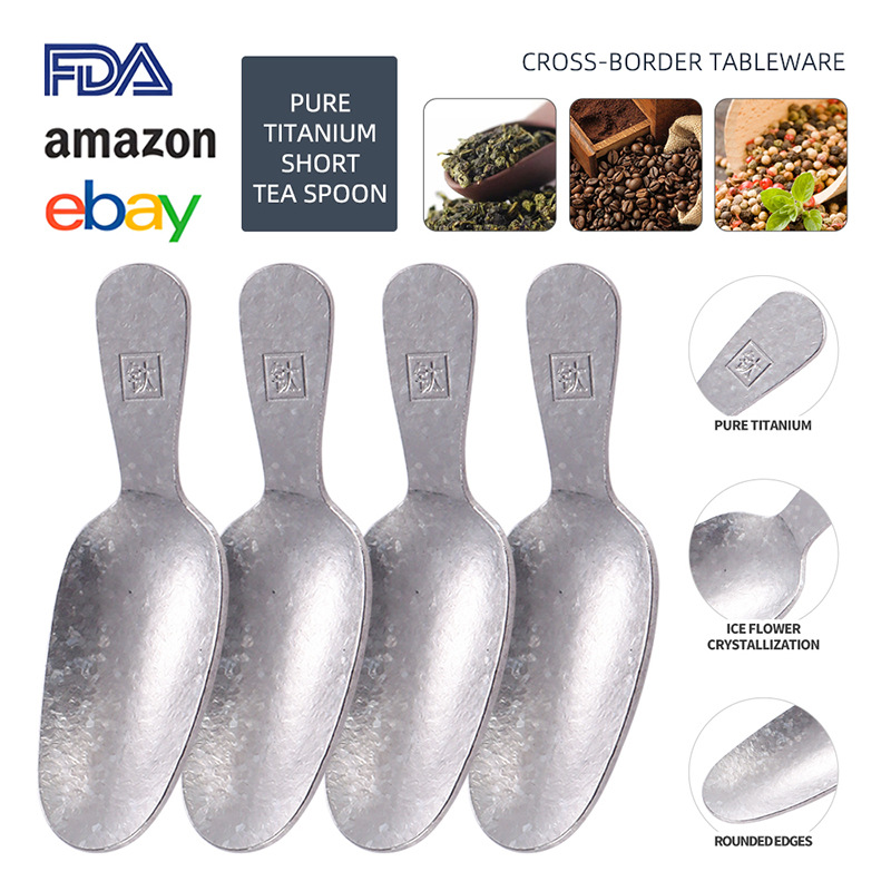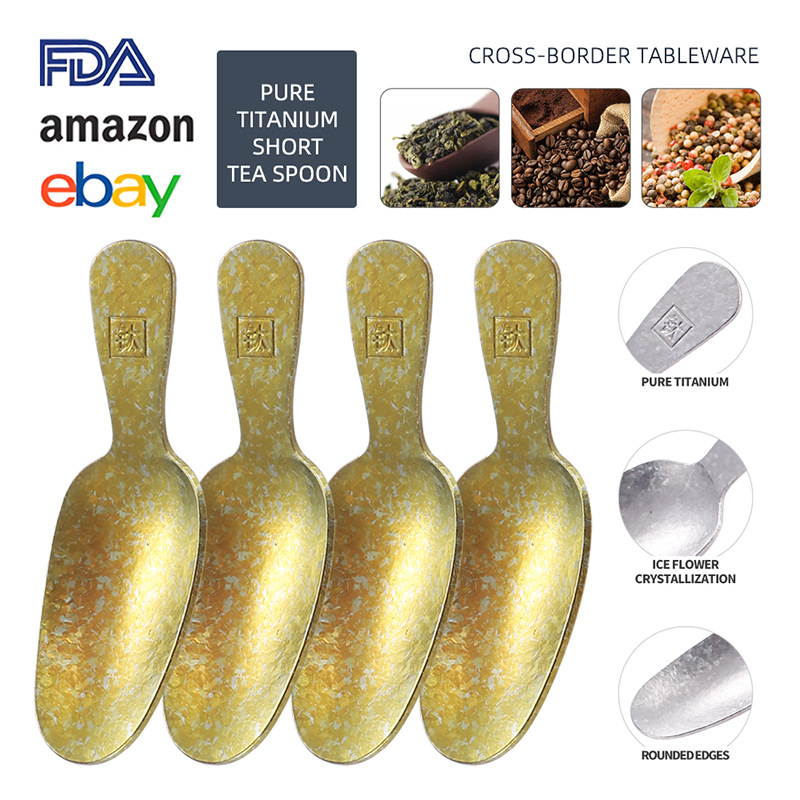纯钛结晶短柄茶勺家用取茶勺咖啡豆勺餐厅雪糕甜品勺茶叶罐分茶勺