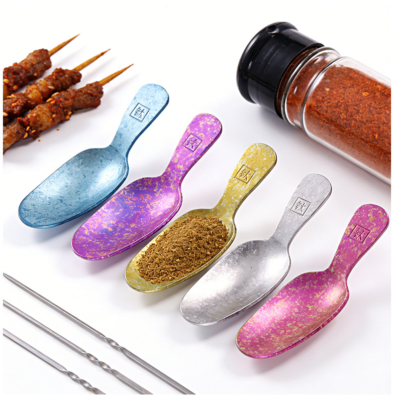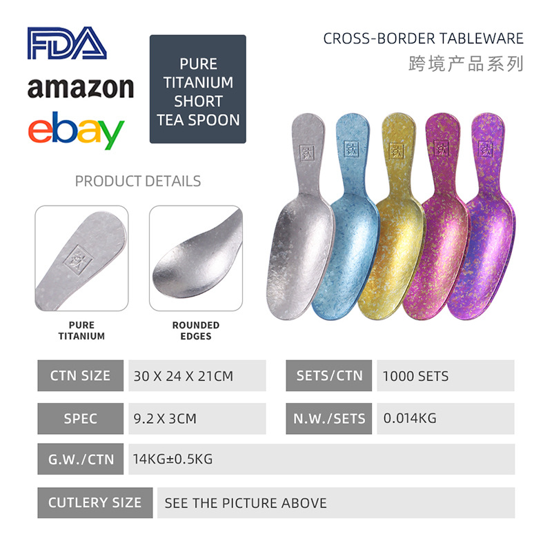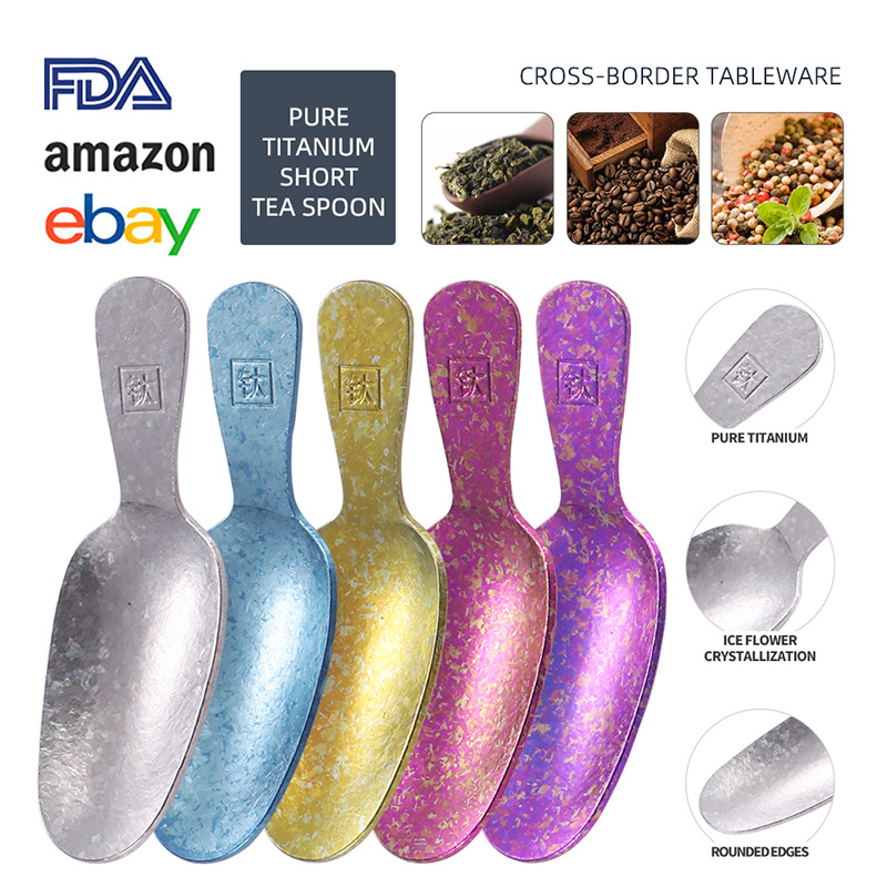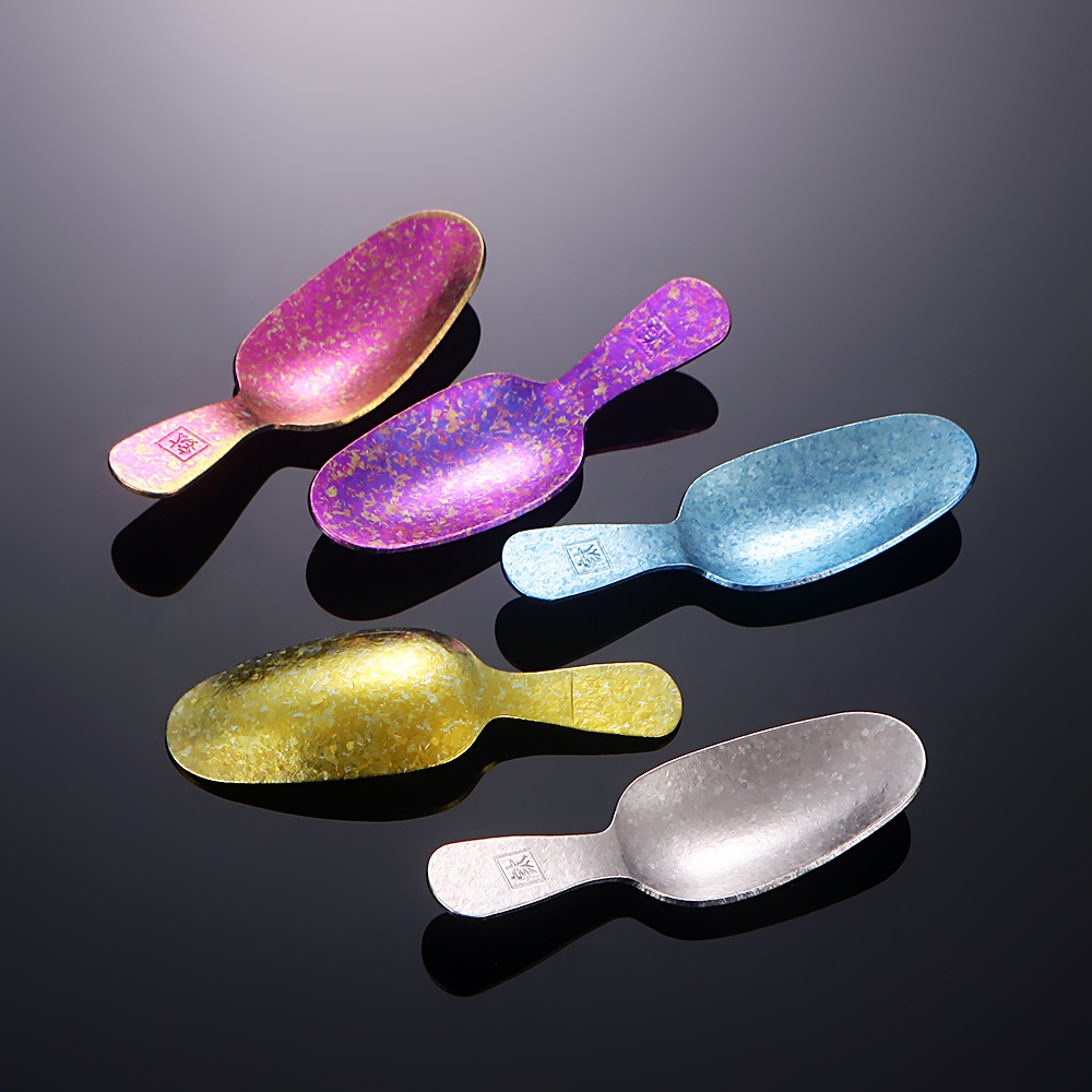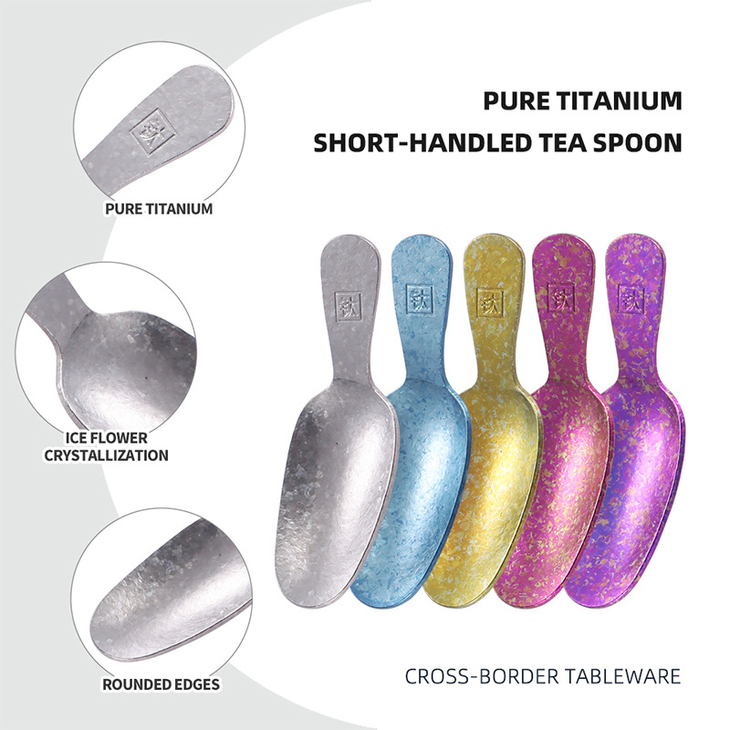 彩色茶匙钛茶叶小勺子分茶叶铲短柄雪糕勺甜品勺纯钛结晶茶勺批发
