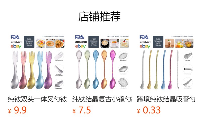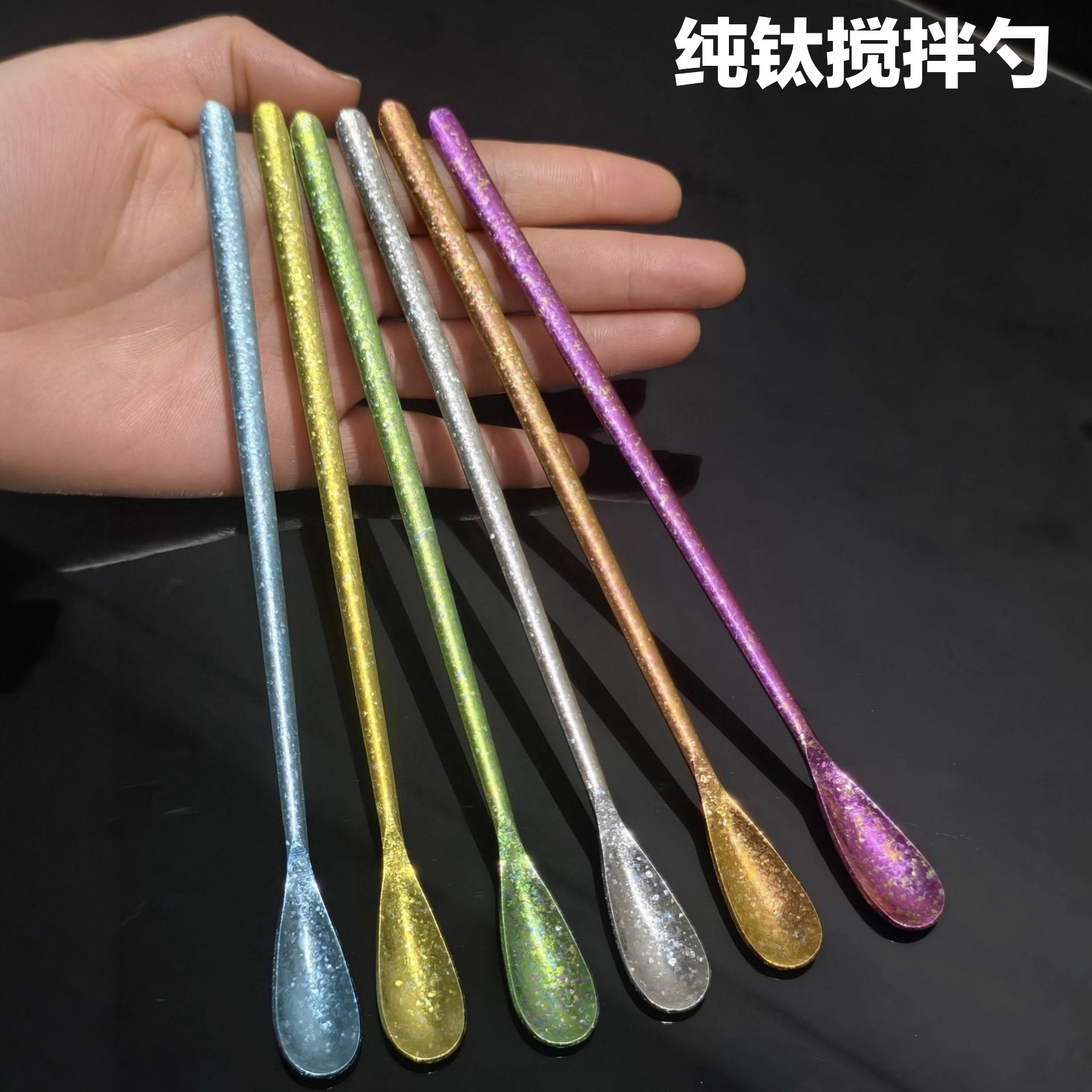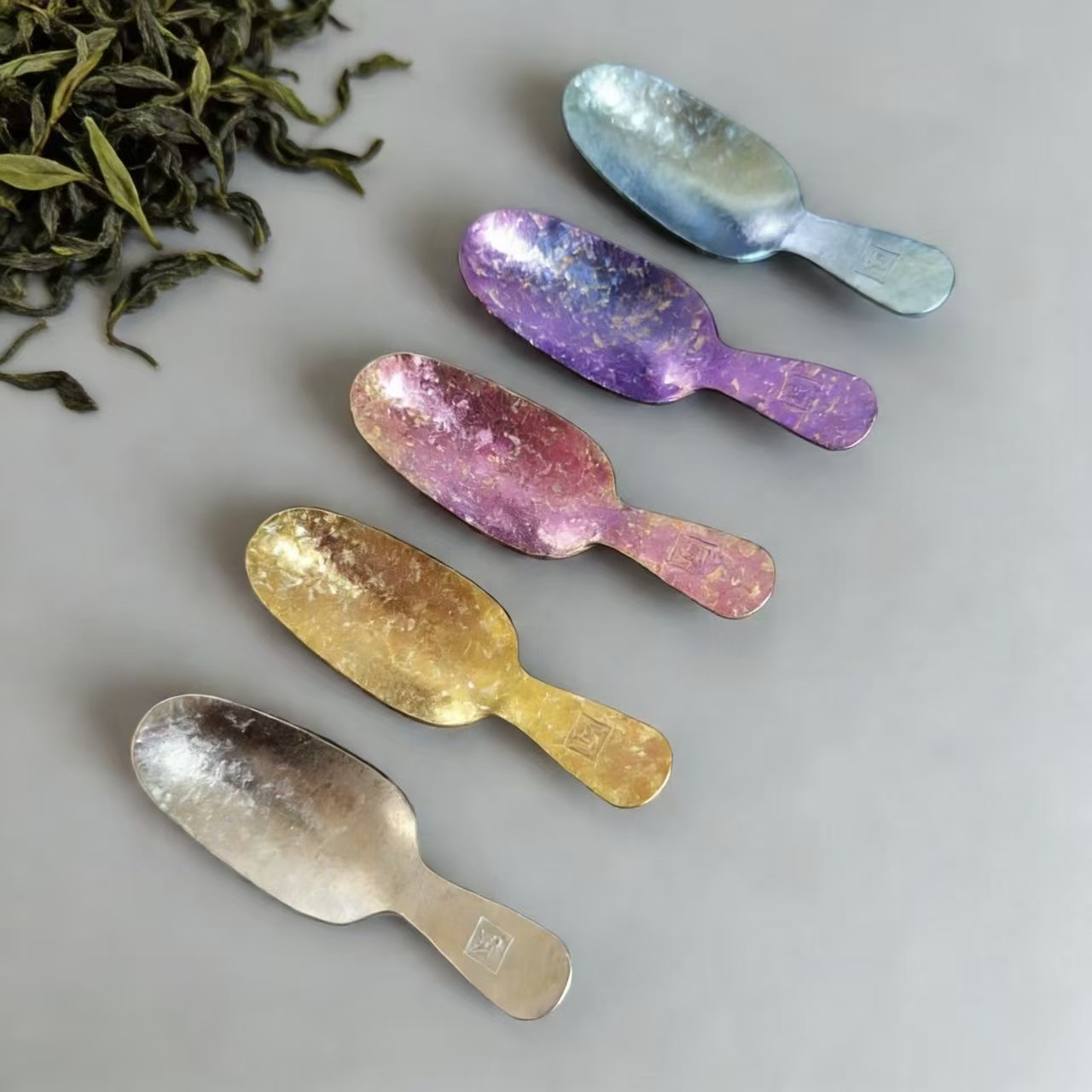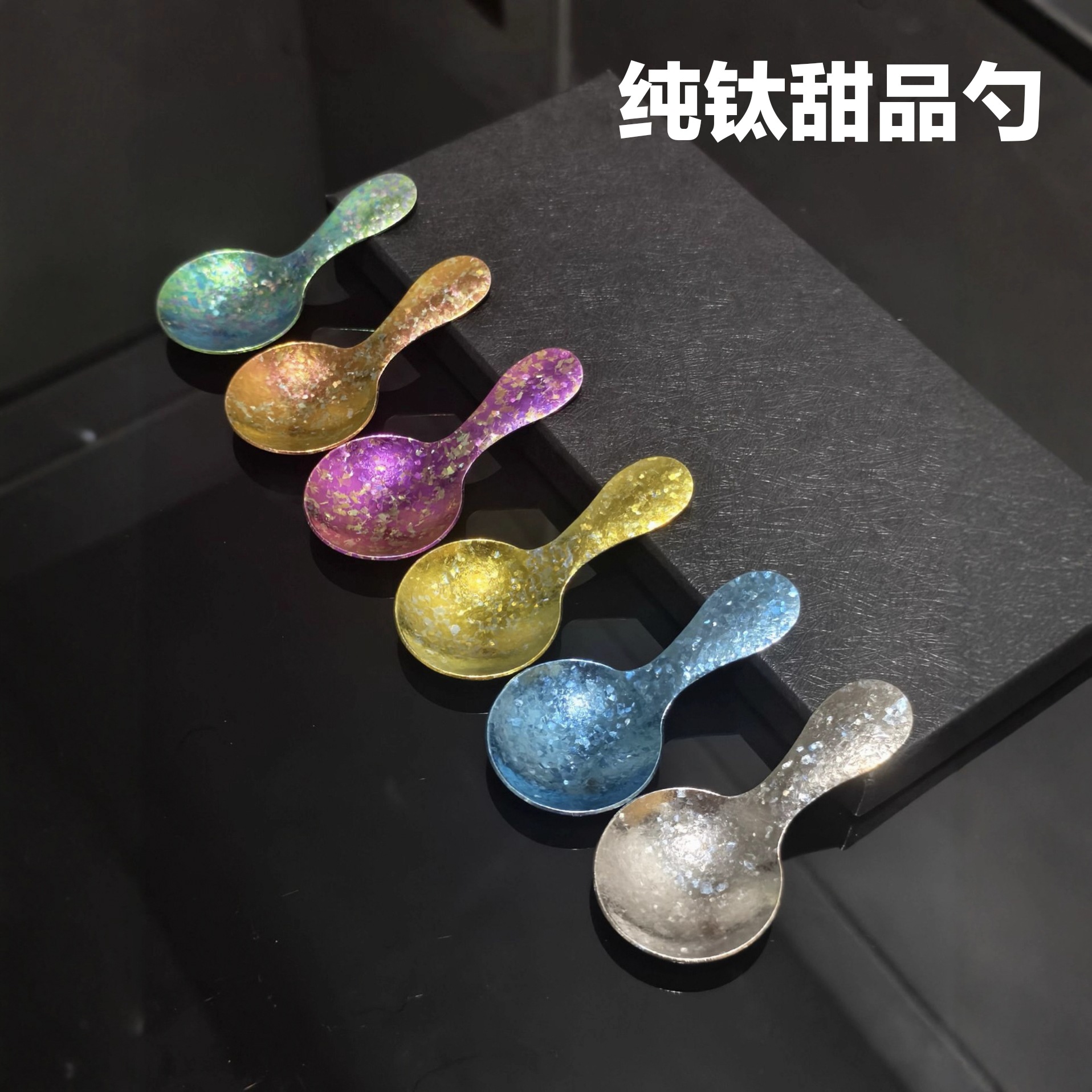 彩色茶匙钛茶叶小勺子分茶叶铲短柄雪糕勺甜品勺纯钛结晶茶勺批发