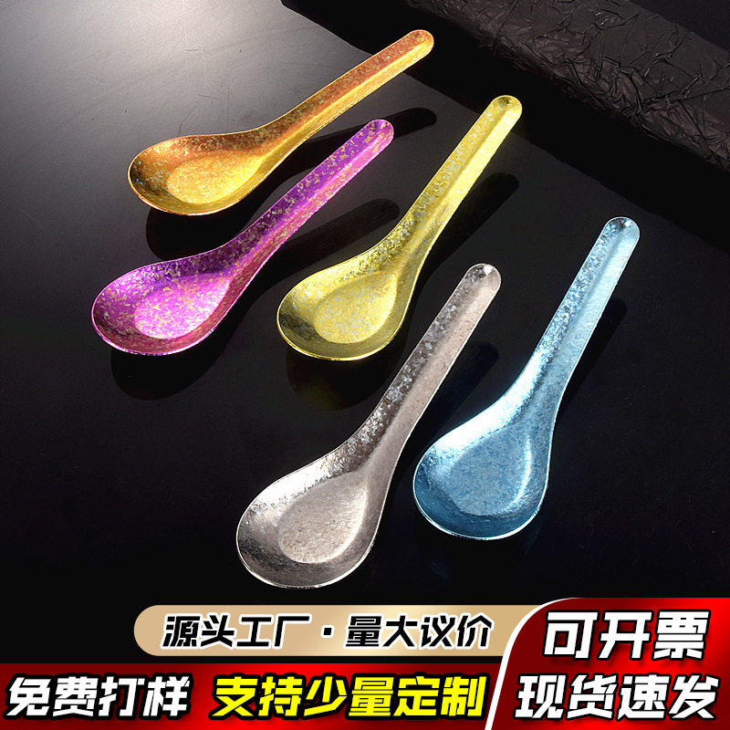 天霖纯钛中式平底勺子结晶冰花彩色餐具家用调羹汤勺经典船头勺子