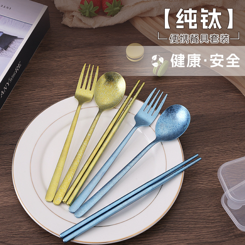 纯钛韩式勺叉筷三件套户外露营套装学生上班族便捷餐具勺子叉筷子