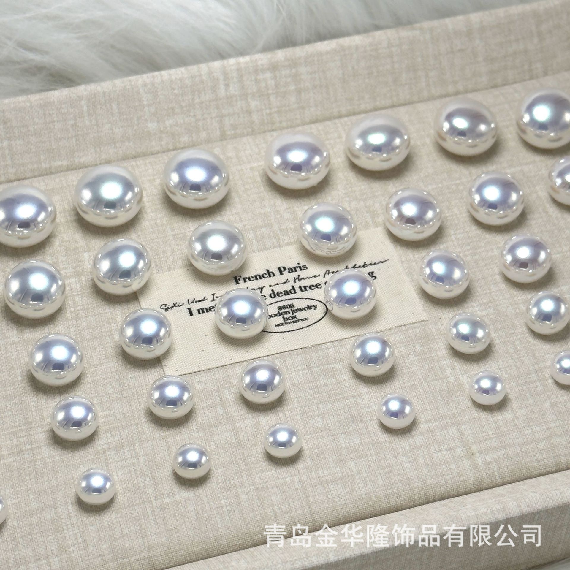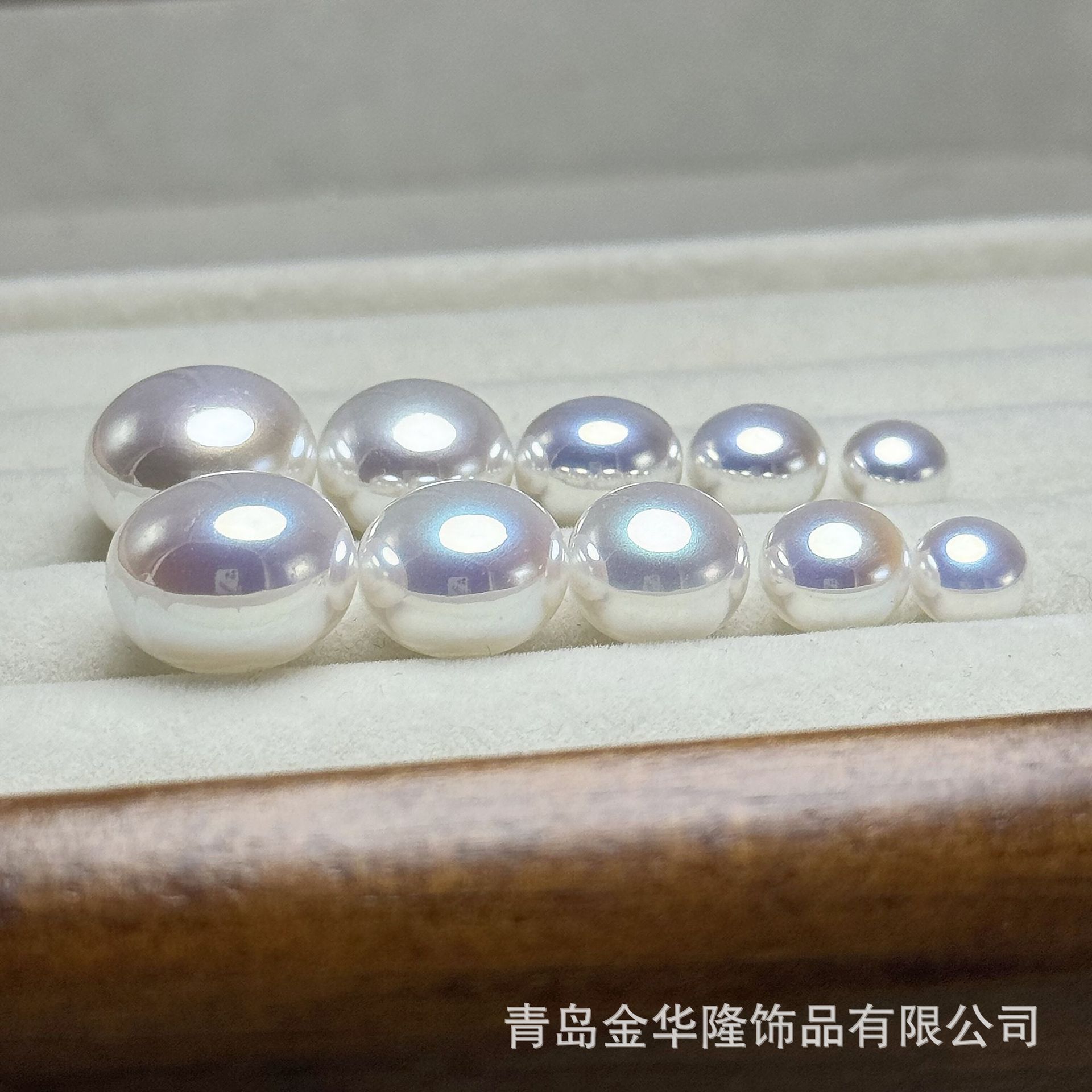 仿马贝珍珠玻璃天女粉馒头珠面包珠炫彩平底半孔散珠耳钉配件diy