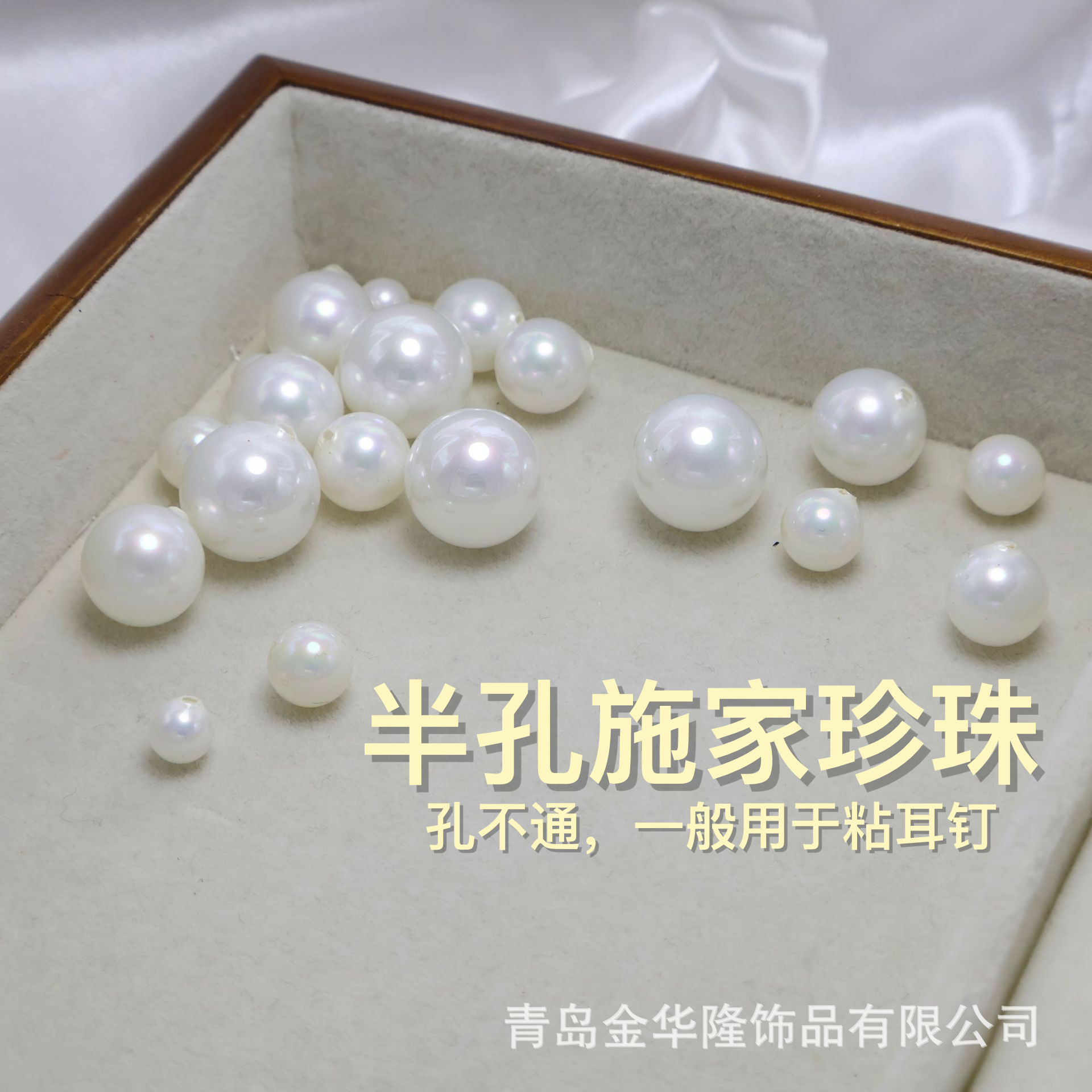 仿马贝半孔珍珠水晶玻璃天女珠炫彩施家珍珠圆珠耳饰吊坠diy配件