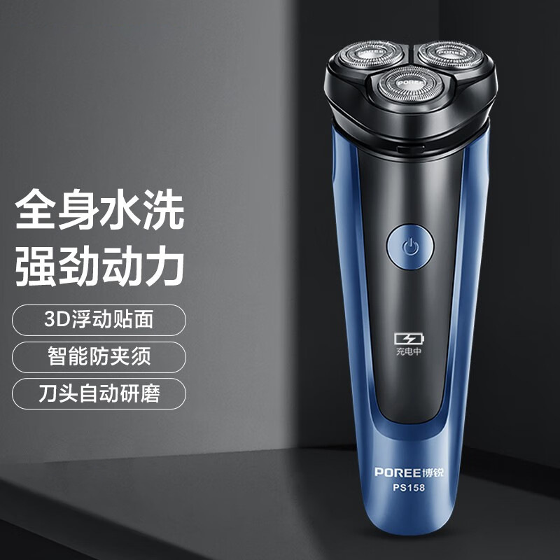 博鋭電気かみそり充電式髭剃り男性三刀頭髭剃り全身水洗いps158