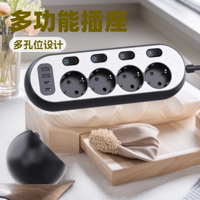 2025年新型高颜値ファッションヨーロッパ線板分制御スイッチ付きUSB多機能多孔性ヨーロッパ規格列