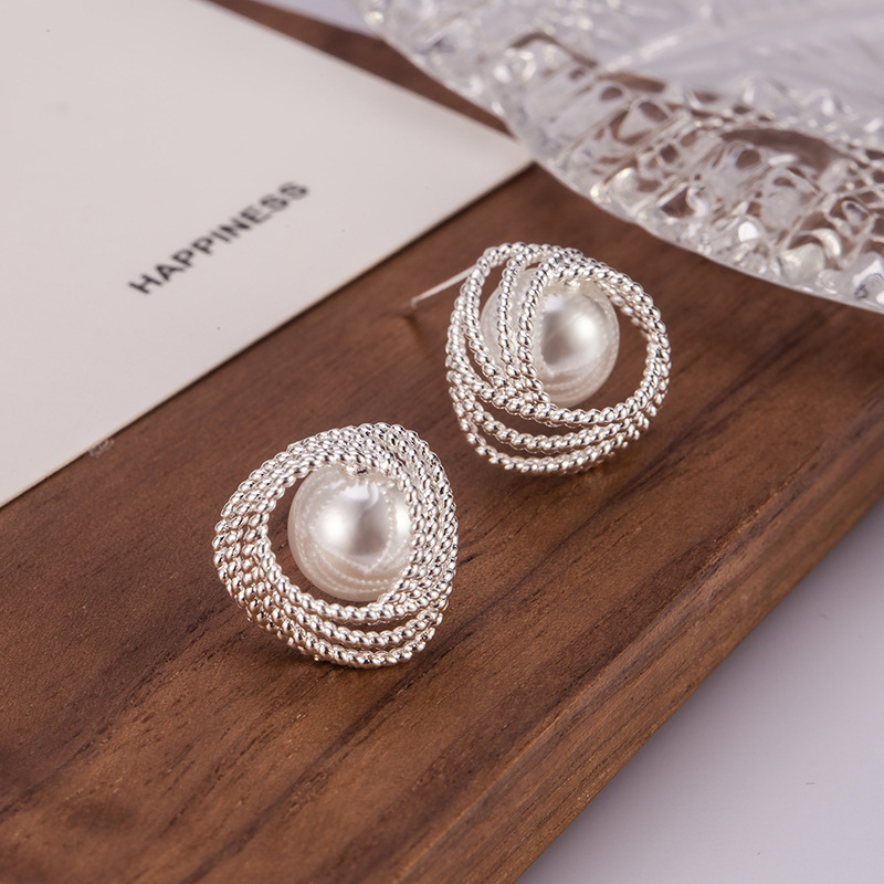 新款法式小香风缠绕珍珠耳钉精致轻奢高级感气质独特漂亮耳饰
