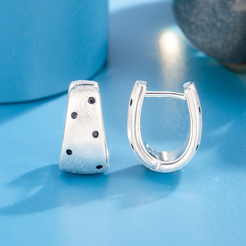 冷淡风拉丝黑色小波点耳环女轻奢高级感耳圈小众独特漂亮耳扣耳饰