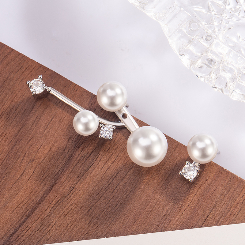 新款不对称珍珠星点锆石耳钉后挂式小众设计百搭轻奢高级感耳饰品