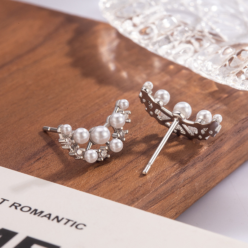 法式月牙仿珍珠耳钉女2025新款爆款小众独特秋冬氛围感气质耳饰