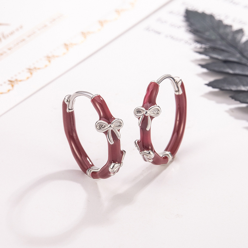 新款秋冬蝴蝶结红色素圈耳环轻奢高级感2025新年圆圈耳扣显白耳圈