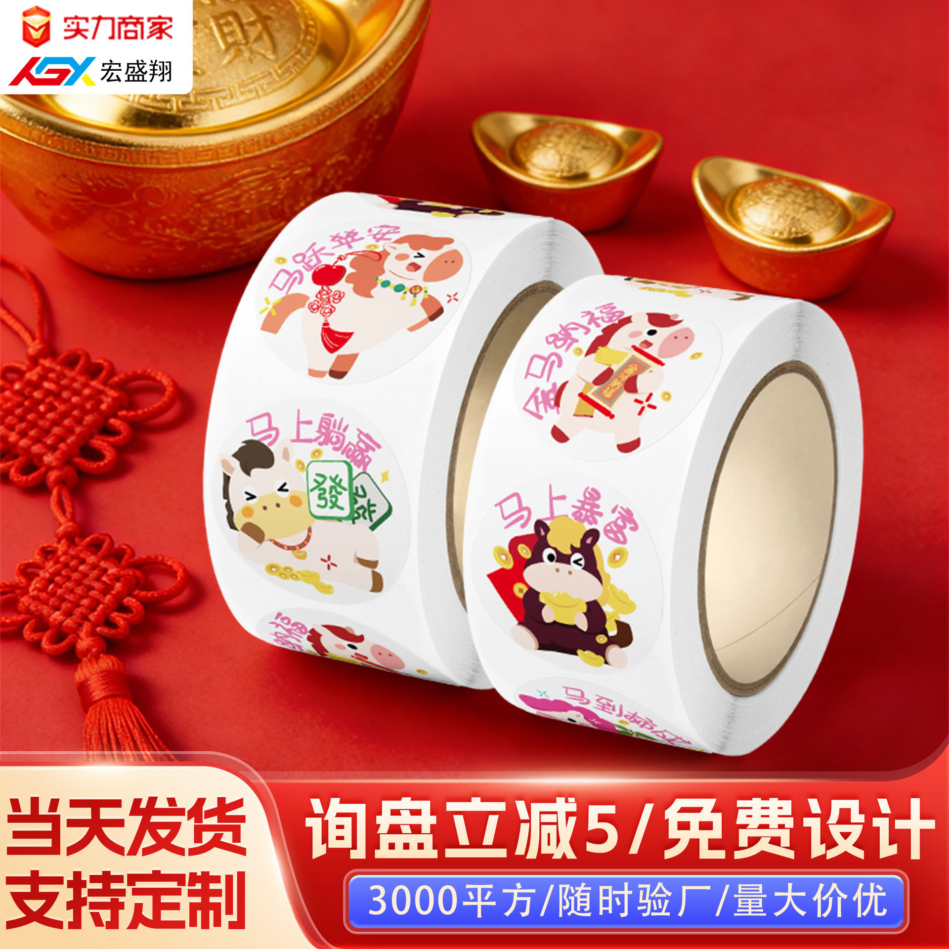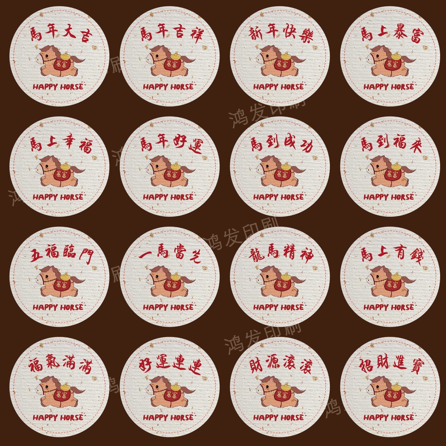 厂家直销马年新年贴纸25mm圆形生肖马春节封口装饰贴铜版纸不干胶