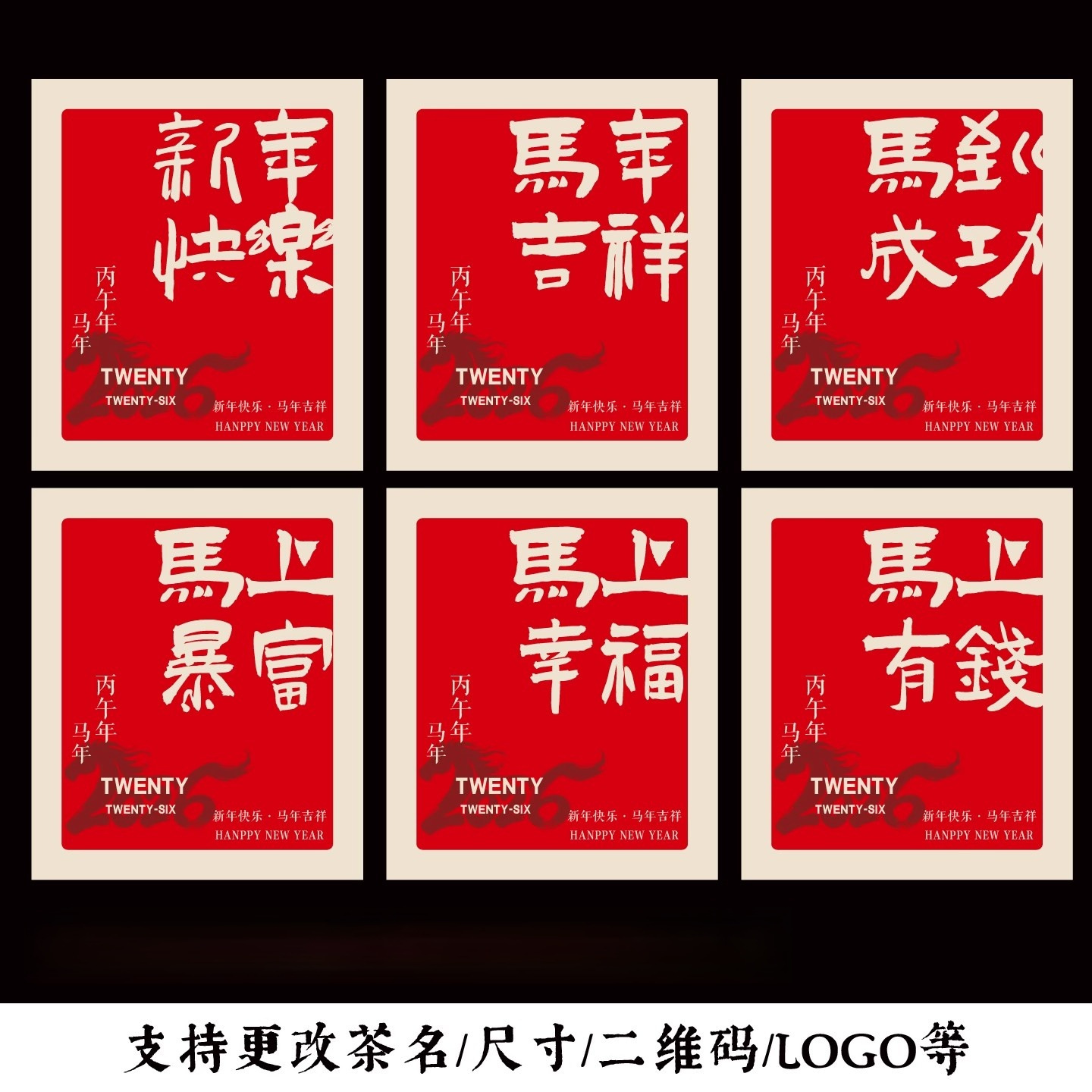 2026马年吉祥不干胶标签国风文艺祝福语马上有钱礼盒包装贴纸