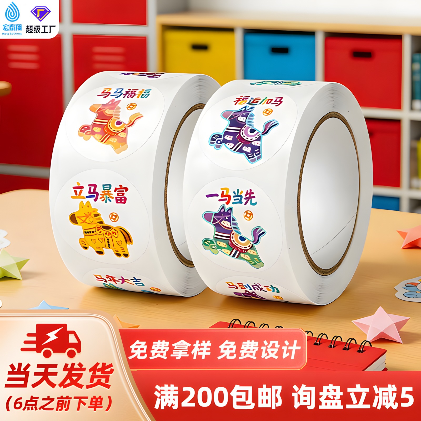 2026马年贴纸卷装圆形新年节日礼物红包装饰自粘封口贴不干胶标签