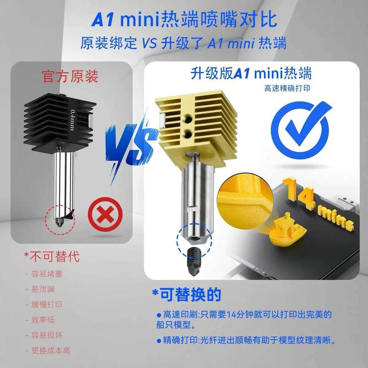 拓竹A1/A1 mini 喷嘴打印头热端组件热端挤出头配件 跨境热卖