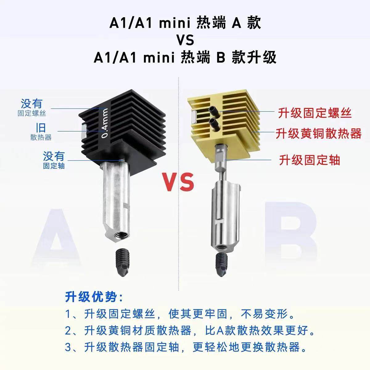 3D打印机配件拓竹A1/A1mini热端打印头升级黄铜散热器可拆卸喷嘴