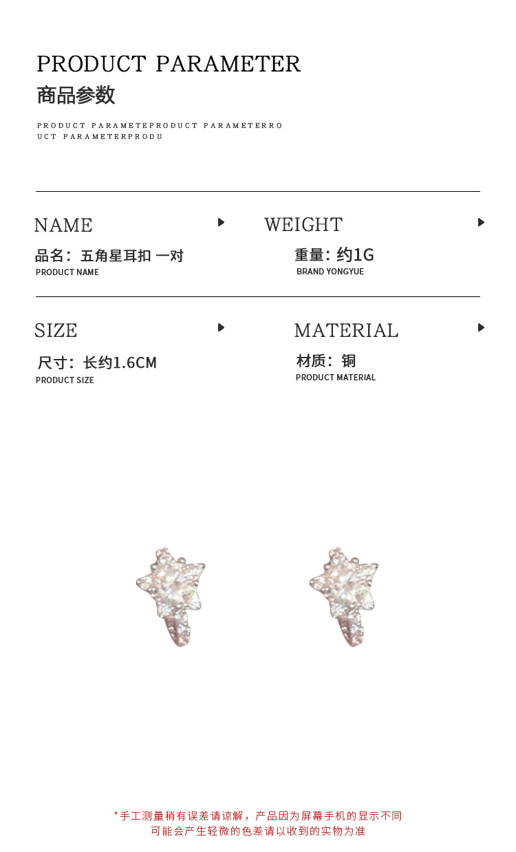 颜色 五角星耳扣 一对