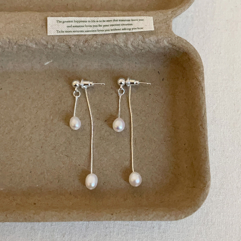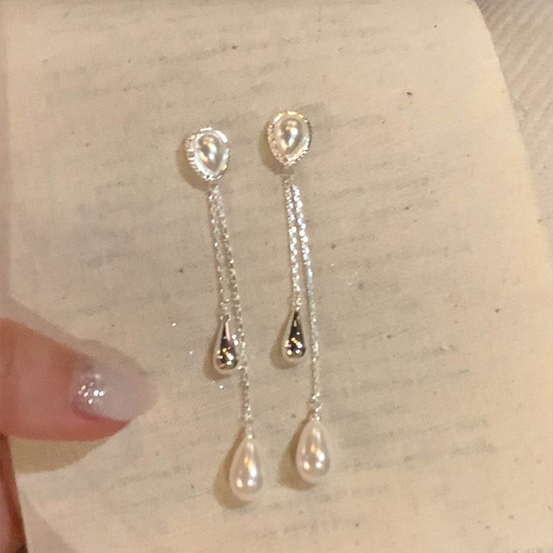 超灵动~法式轻奢高级感水滴珍珠长流苏耳钉女精致百搭方圆脸耳饰