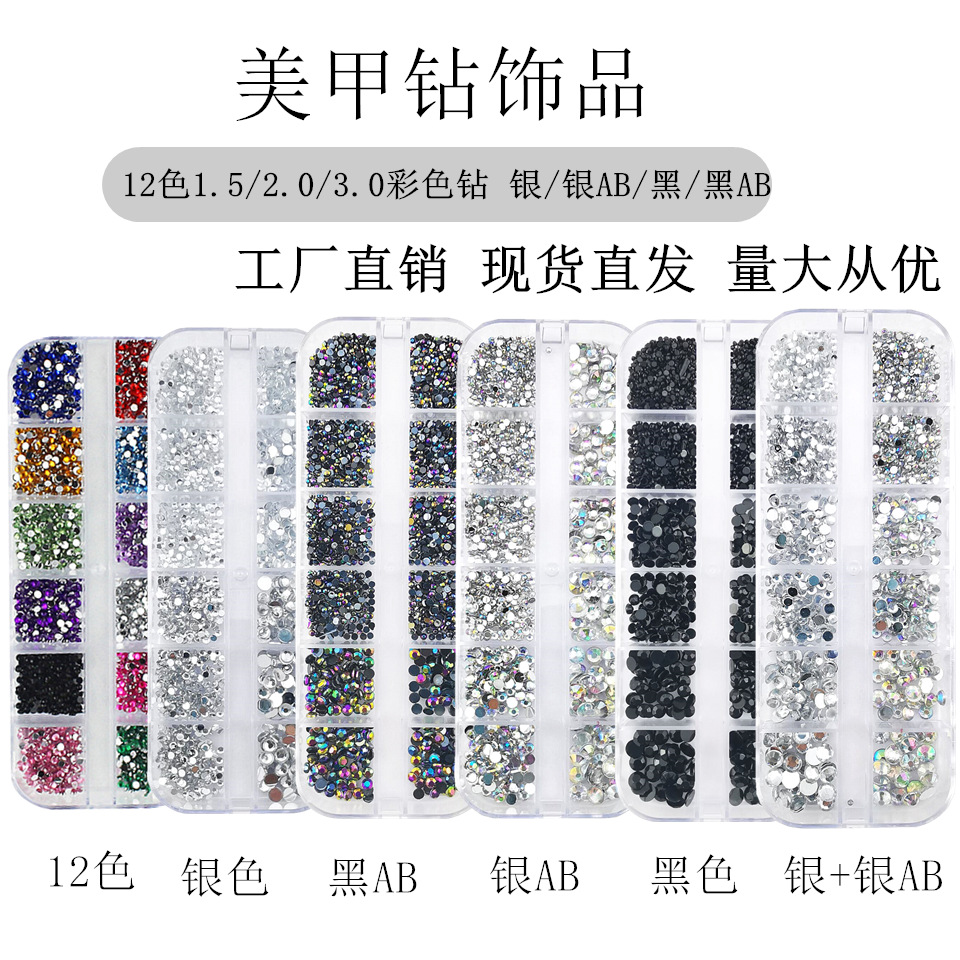 热销跨境贴标代发24/48/40色指甲钻套装大容量树脂钻AB钻diy饰品