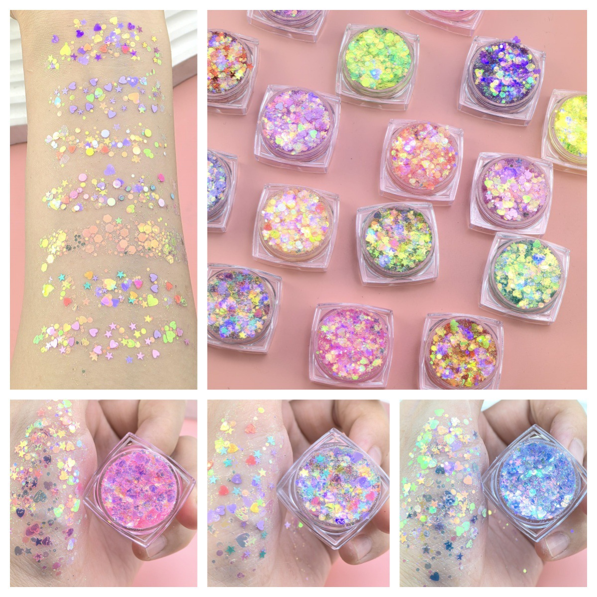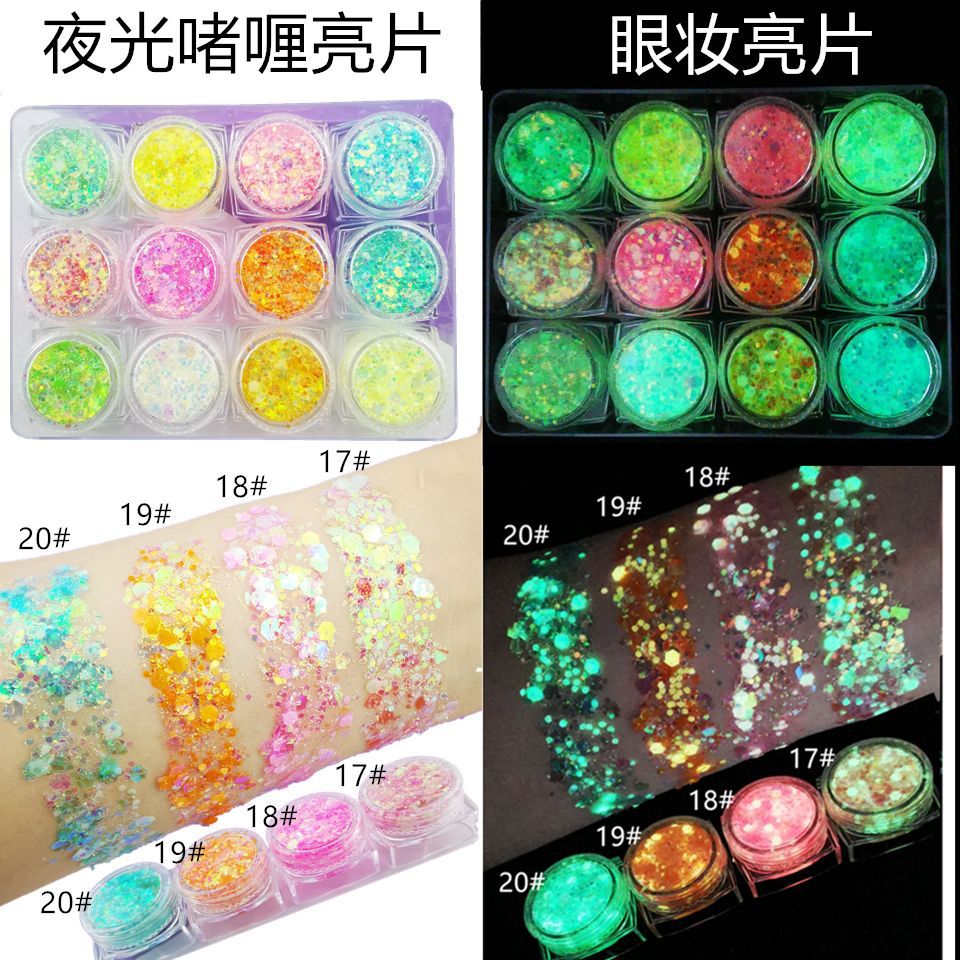 クロスボーダー接着剤不使用発光ジェルスパンコール 24 色発光形状スパンコール DIY まつげステージパフォーマンス光吸収