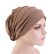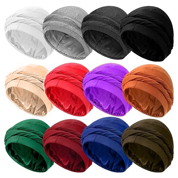 新作無地輸出用包頭帽、ミルクシルク製単色三つ編みヘッドスカーフ帽子、越境供給