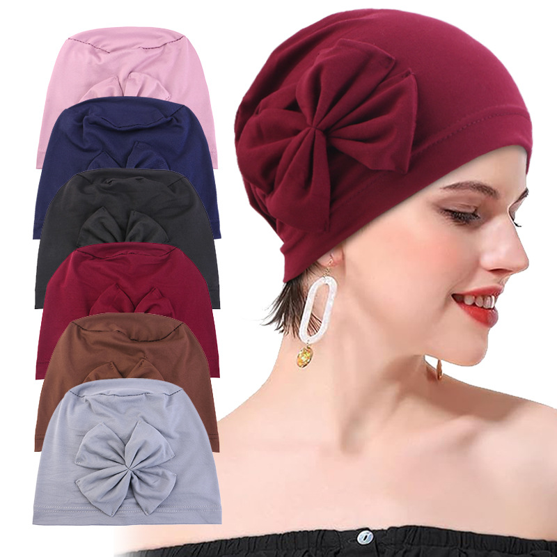新款纯色交叉蝴蝶结盘花头巾帽护发包头帽跨境帽子 JDT-506