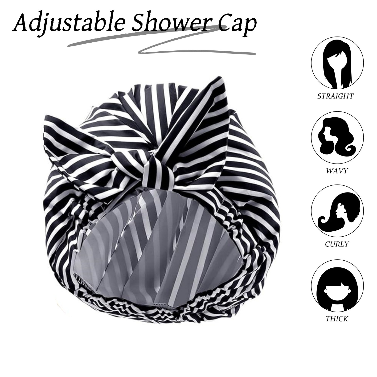 亚马逊加大蝴蝶结浴帽防水发帽印花睡帽可调节淋浴帽洗澡沐浴女款