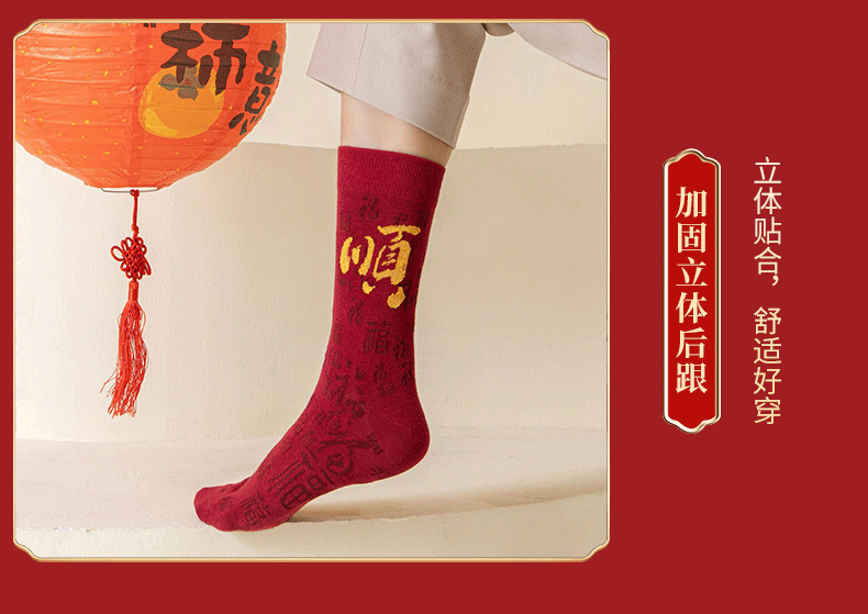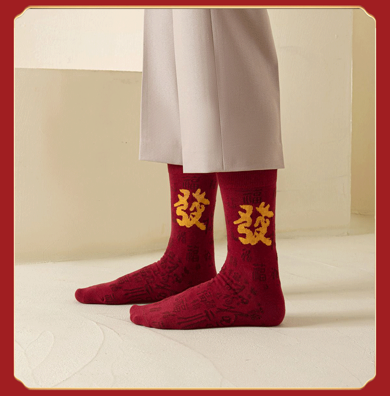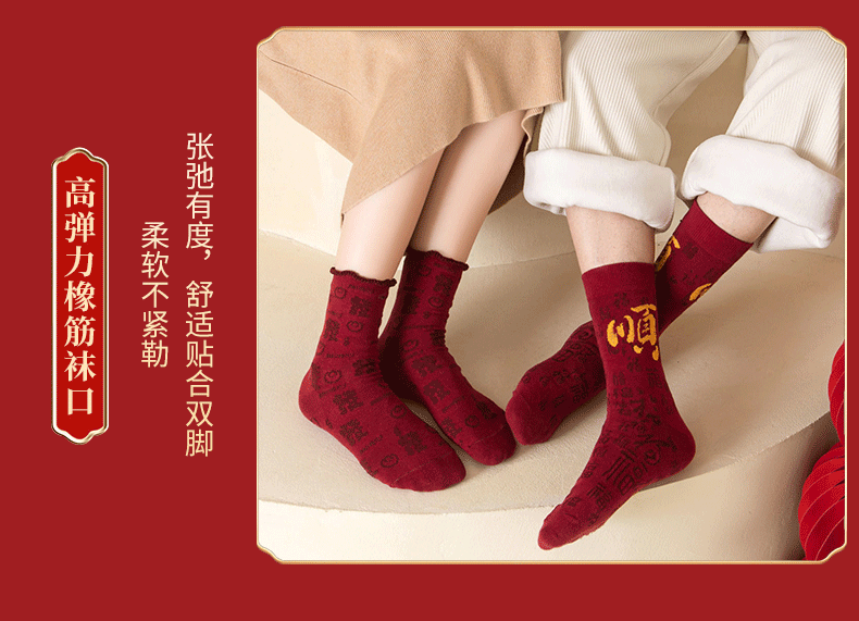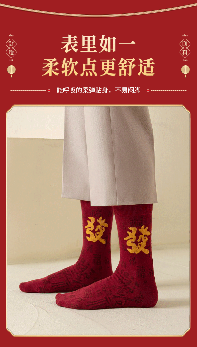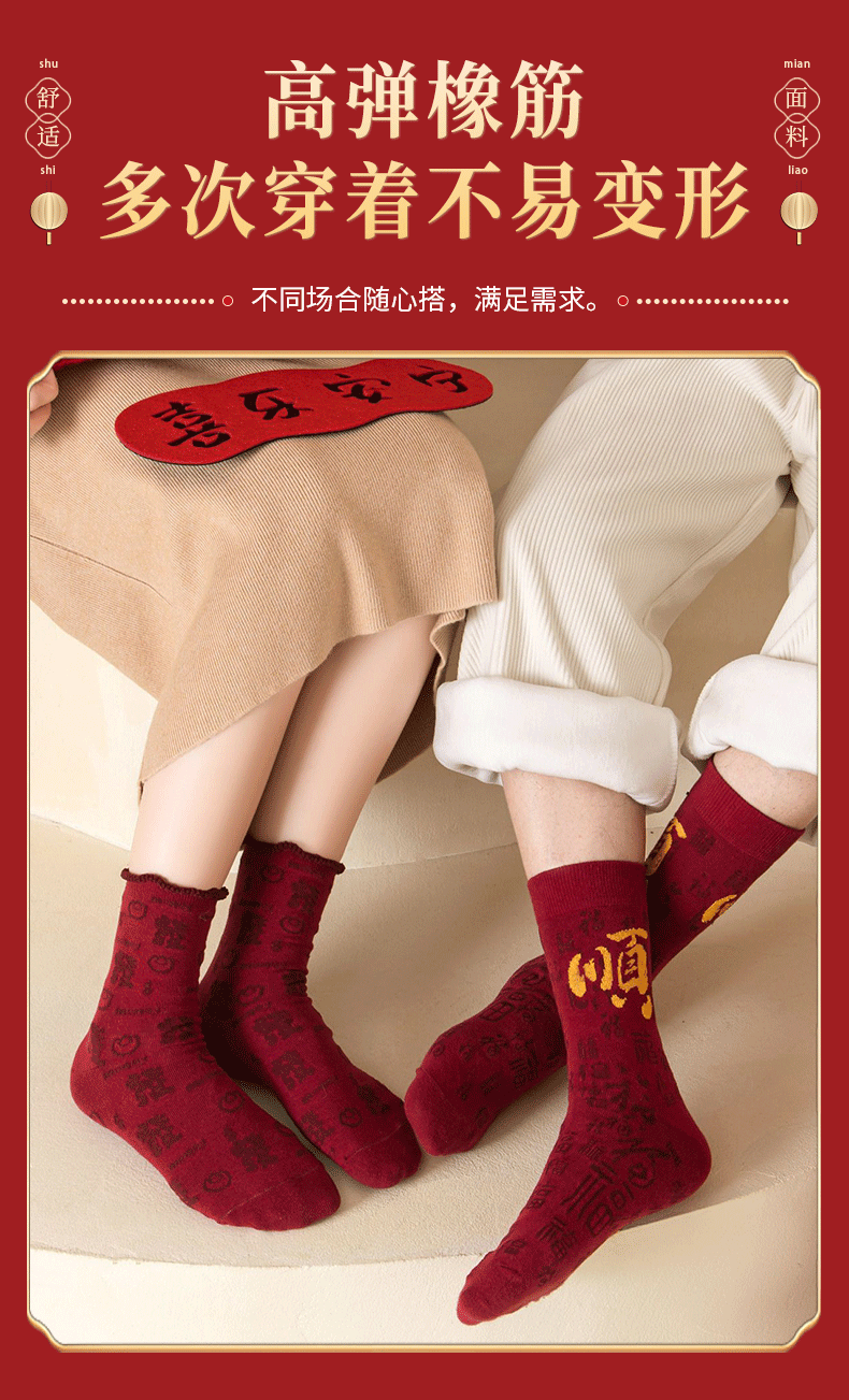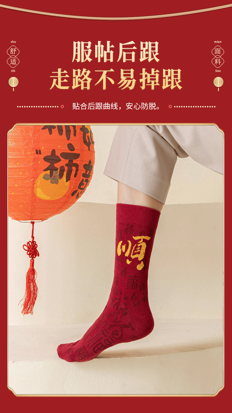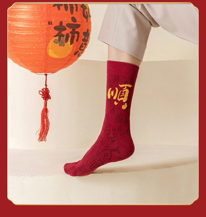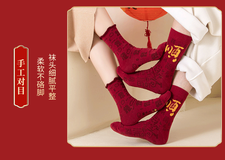2026年百福袜新年红袜子棉袜袜子女本命年喜庆袜子男女同款中筒袜