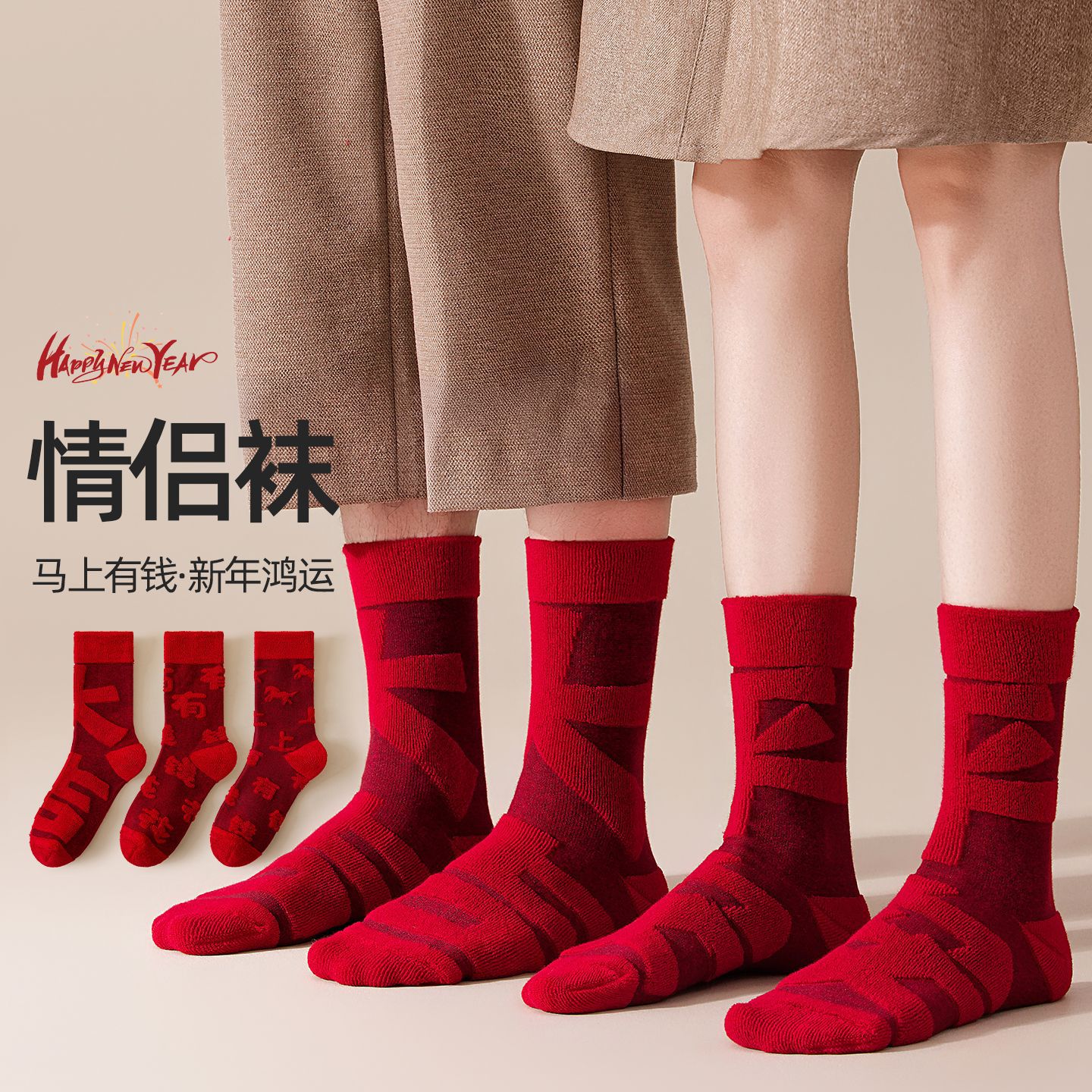 批发纯棉本命年红色袜子男女款中筒袜冬2026新款马年情侣结婚礼物