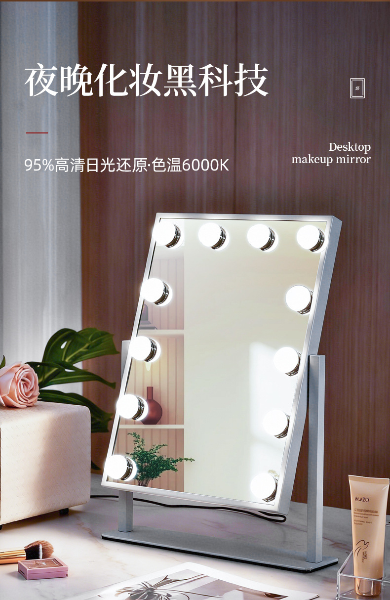 化妆镜带灯led台式桌面镜 好莱坞化妆镜 台式 补光镜梳妆台美妆镜