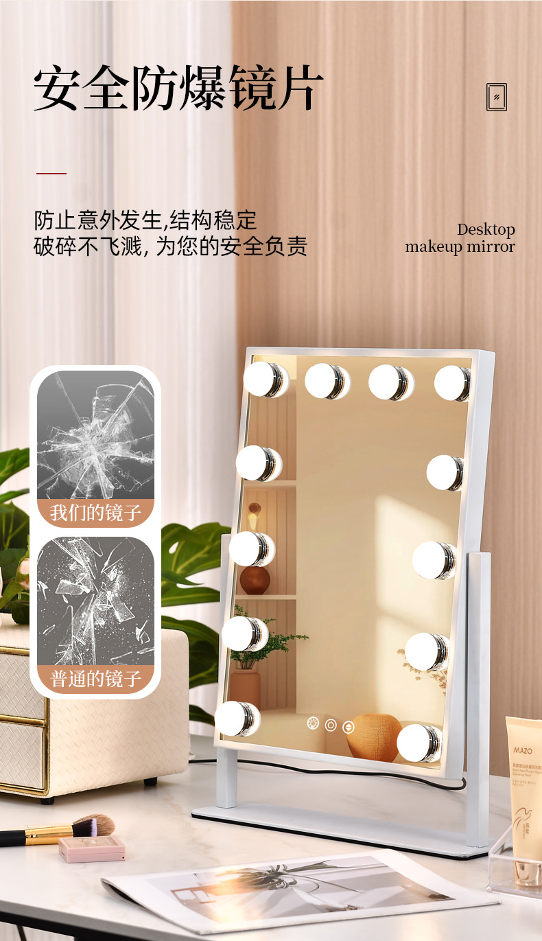 跨境化妆镜带灯好莱坞智能桌面台式梳妆镜化妆师专用补光超亮镜子