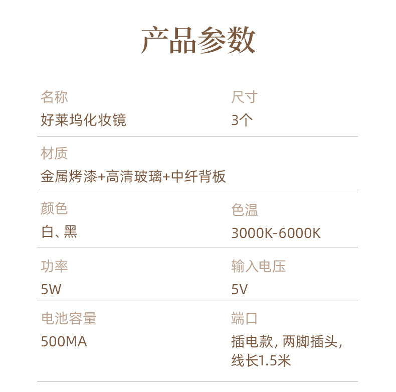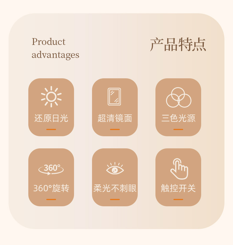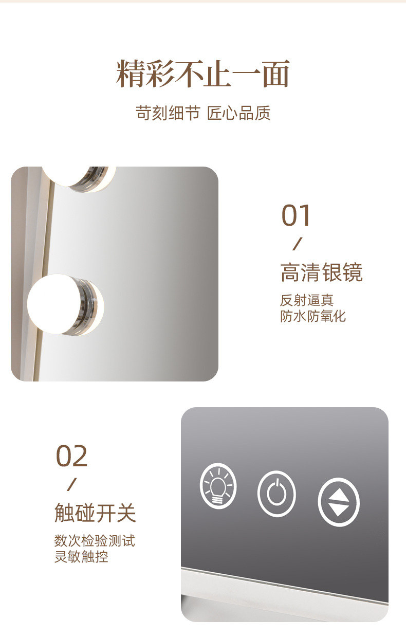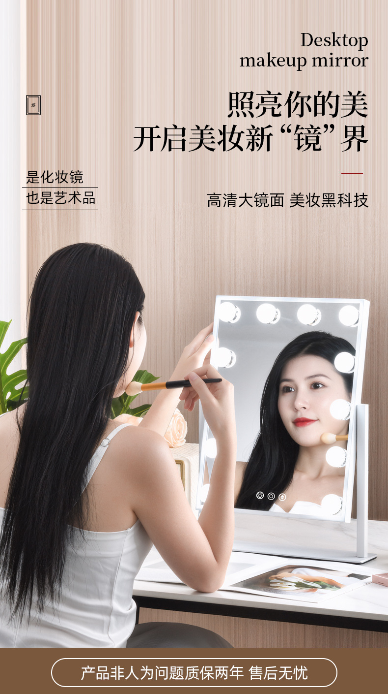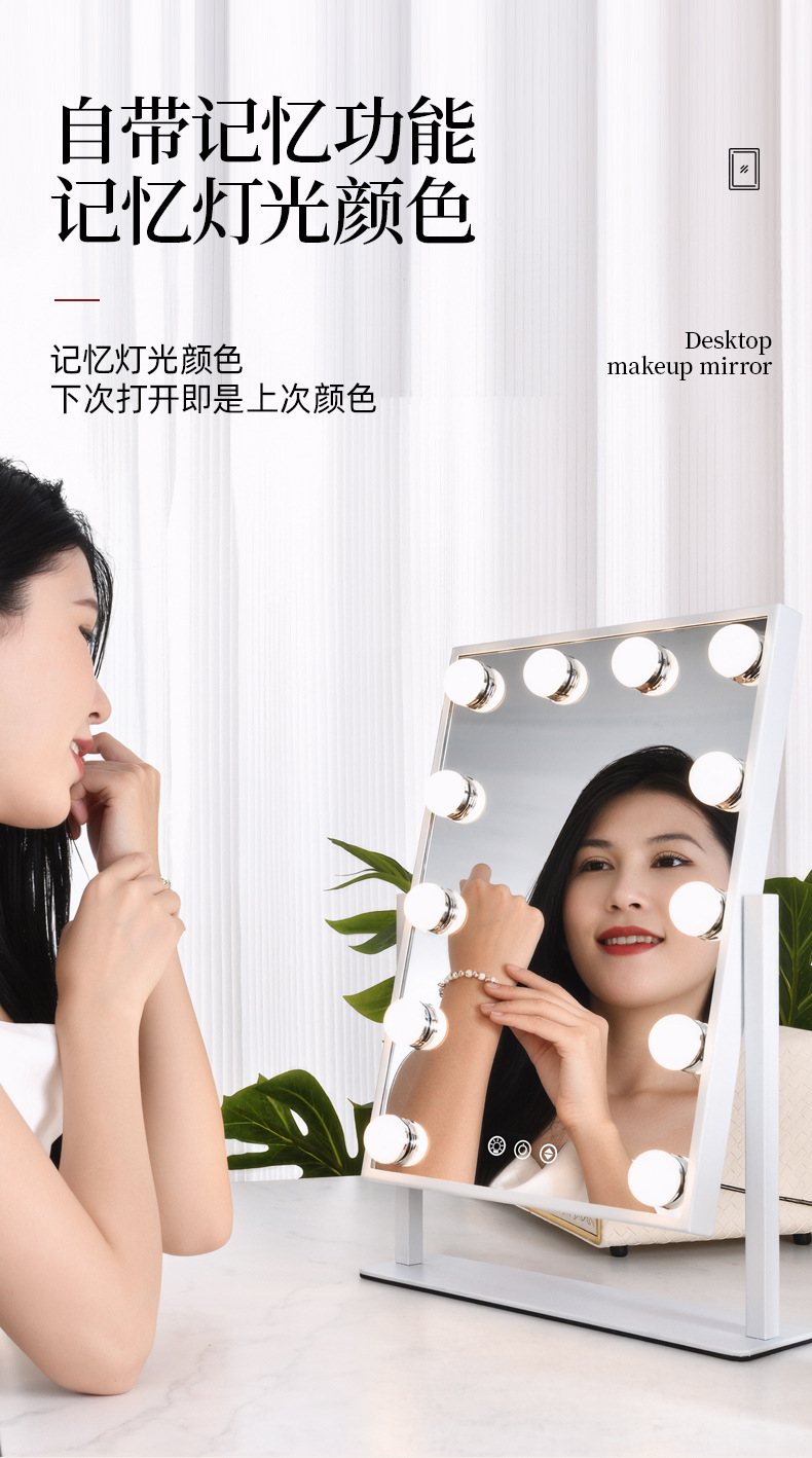 轻奢高级好莱坞化妆镜 台式 LED 补光 充电款智能调光 ins 风桌面