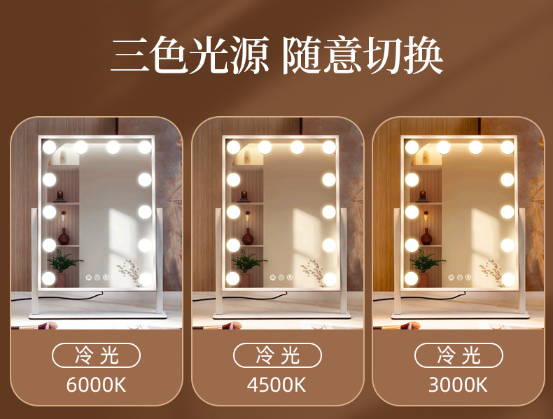 led化妆镜子台式桌面带灯大号家用光智能卧室梳妆台镜网红美妆