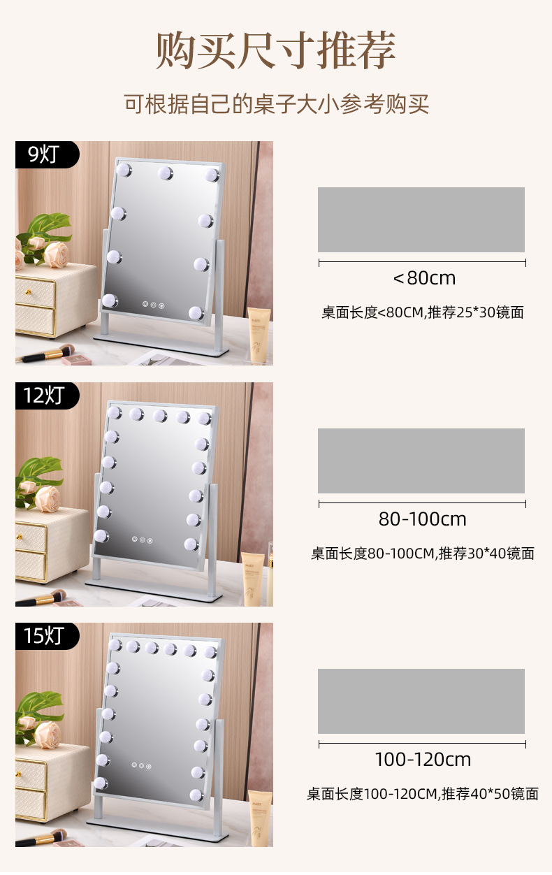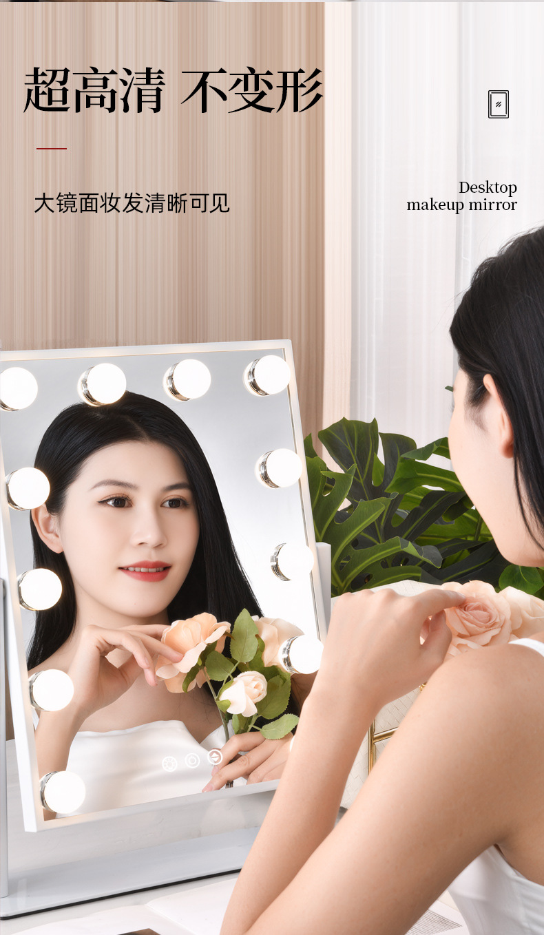 化妆镜带灯led台式桌面好莱坞镜梳妆台宿舍美妆镜化妆师专用镜子