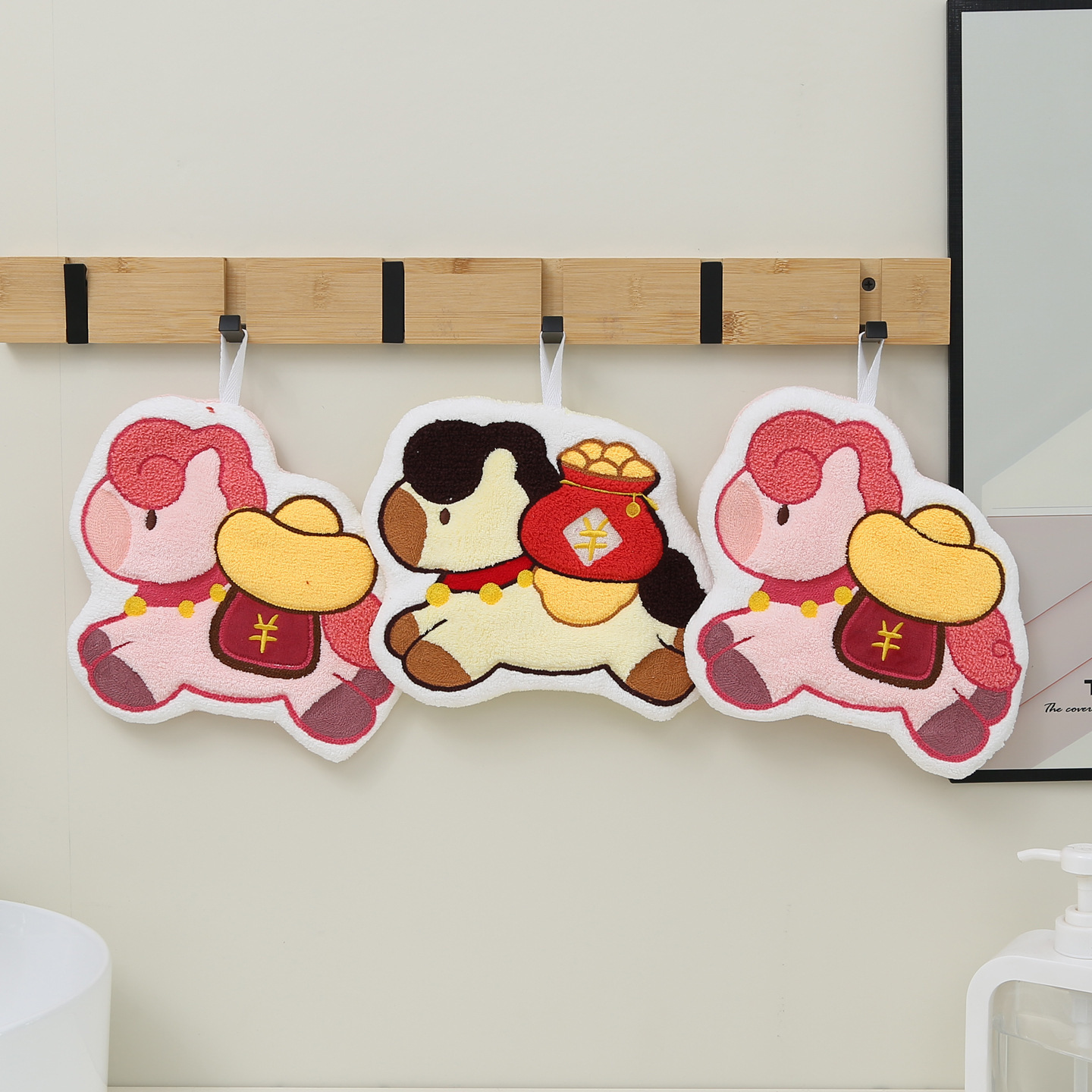 珊瑚绒刺绣可爱卡通小马挂式加厚吸水速干家用擦手毛巾厨房抹手布