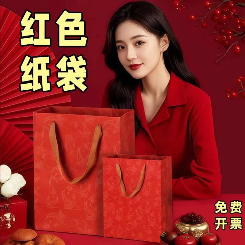 2026马年礼品袋定制新年春节手提牛皮纸袋生日红色伴手礼物袋现货