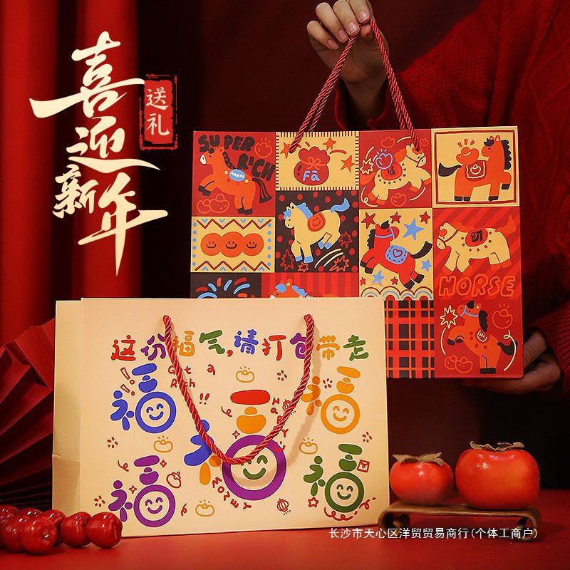 新年礼品袋马年送礼手提袋子2026过年创意零食礼物袋喜庆礼品袋子