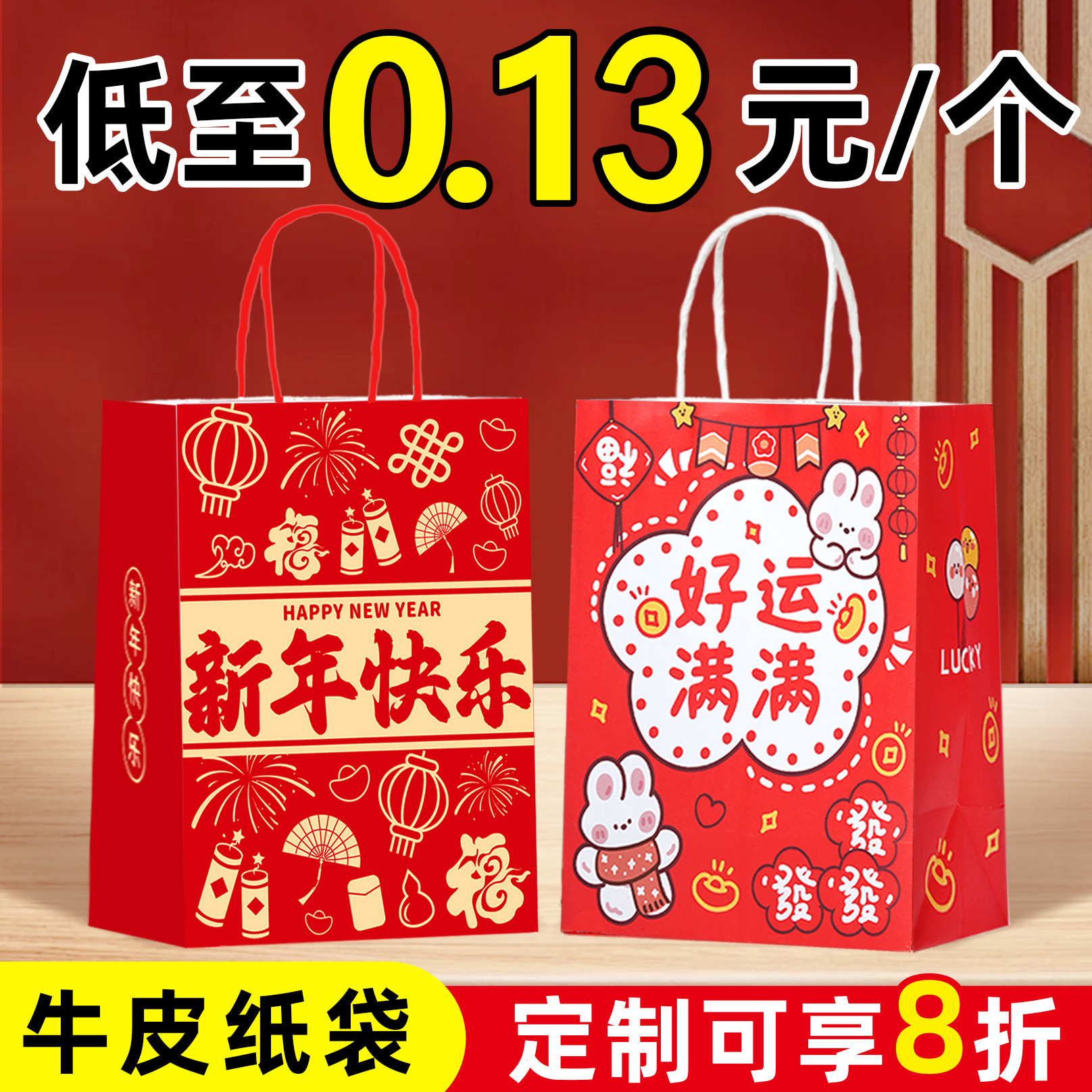 牛皮纸袋新年春节元旦礼品手提袋饰品店批发包装礼品袋定制加logo