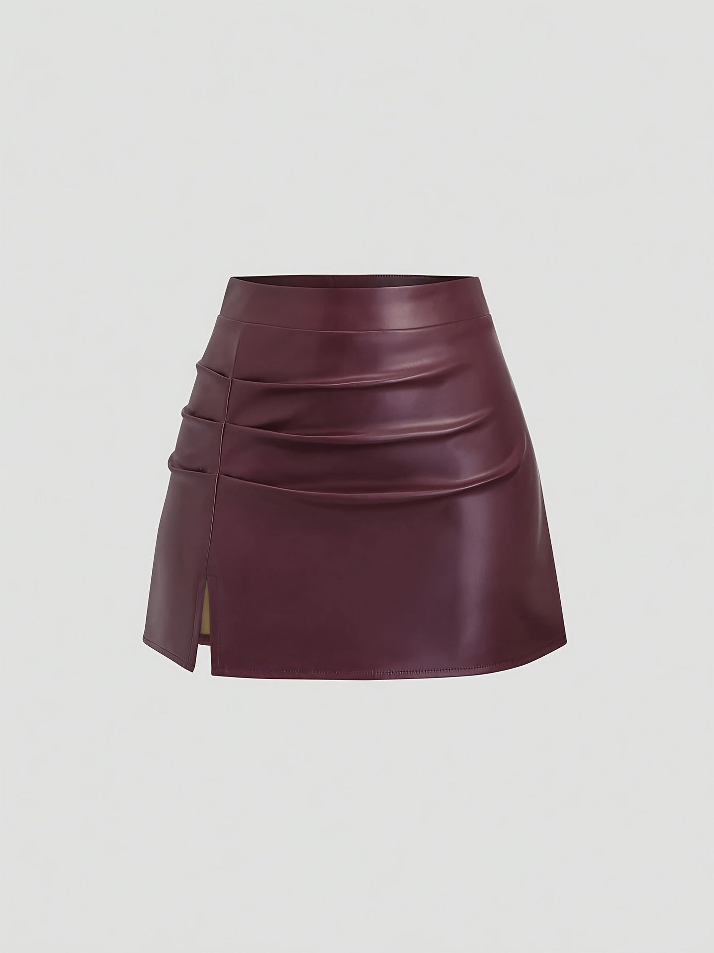欧美街头高腰A字短裙侧边捏褶设计小开叉时尚个性PU皮女士半身裙