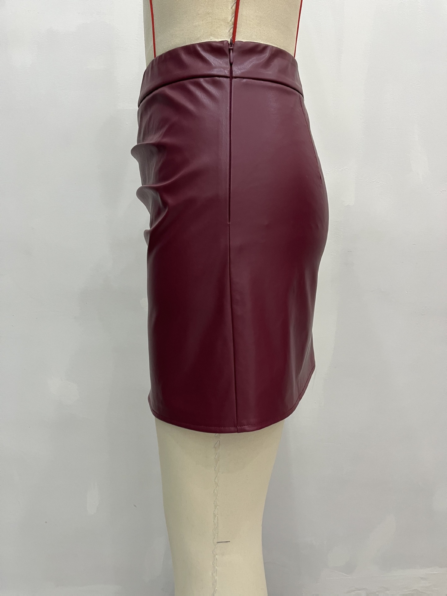 跨境电商女装PU皮短裙欧美外贸女式PU开叉包臀皮裙跨境电商货源现