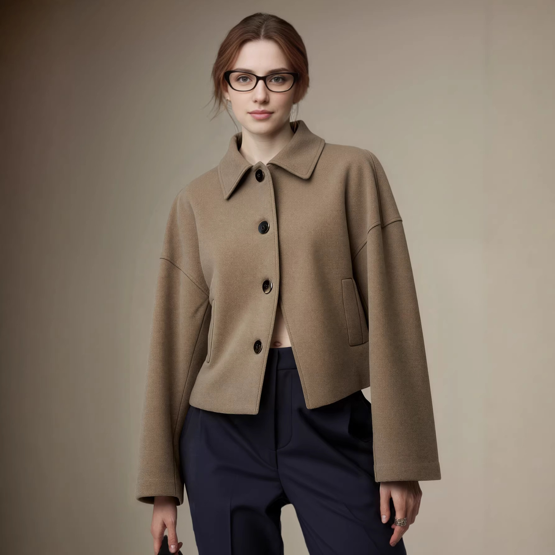 秋冬季欧美US大码时尚夹克外套翻领保暖通勤仿呢子口袋夹克外套