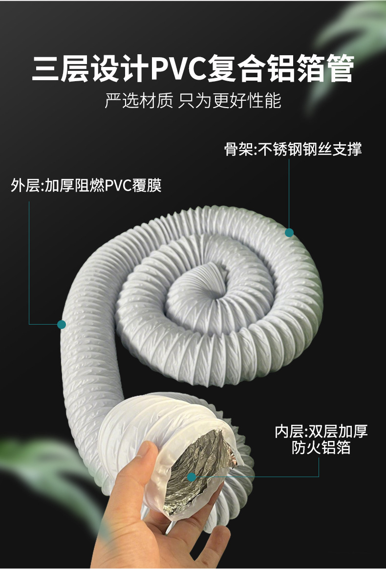 pvc铝箔复合软管新风系统加厚伸缩排风管空调通风出气铝箔软管