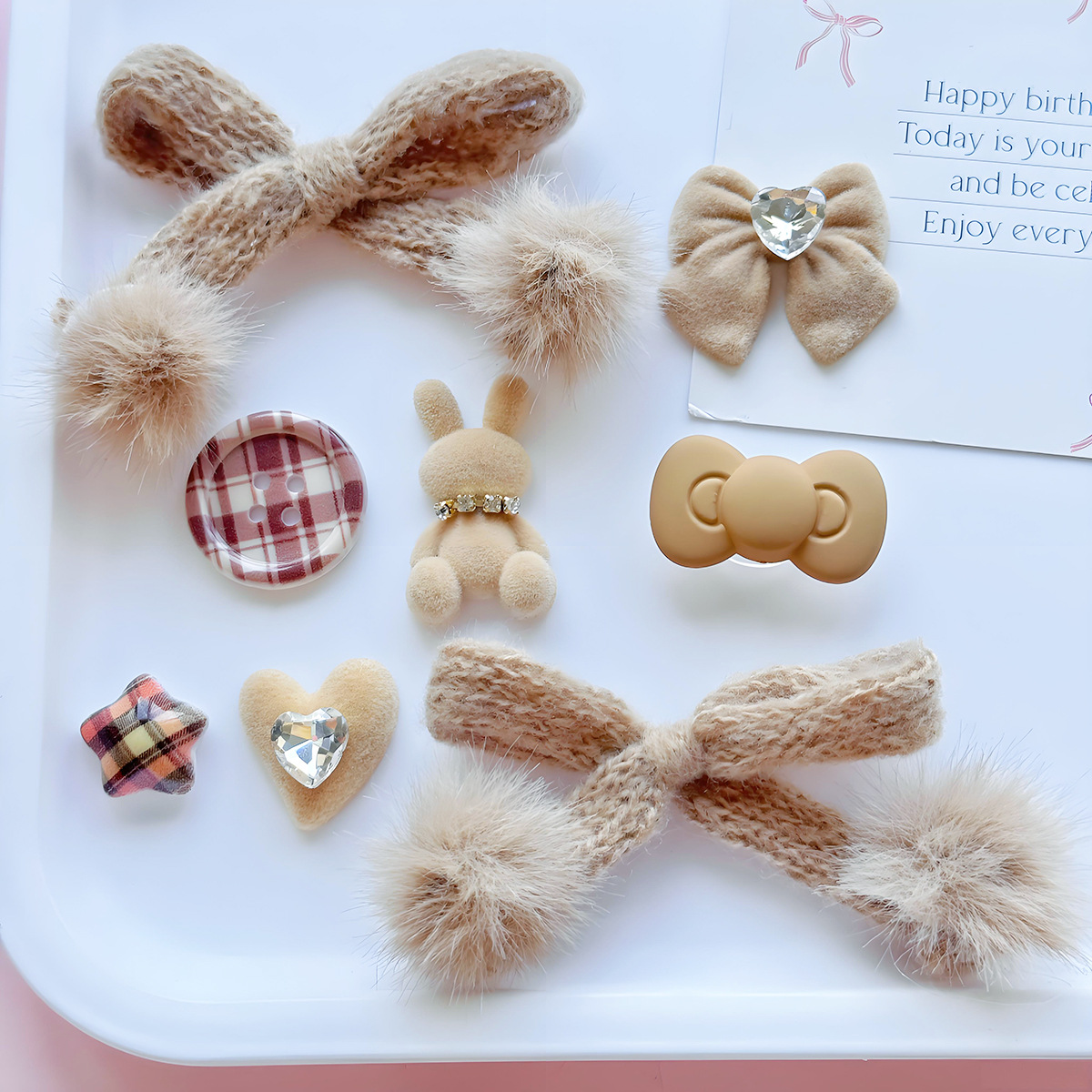 植绒蝴蝶结爱心diy饰品小熊配件手机壳配饰贴片鞋花发饰发夹辅料