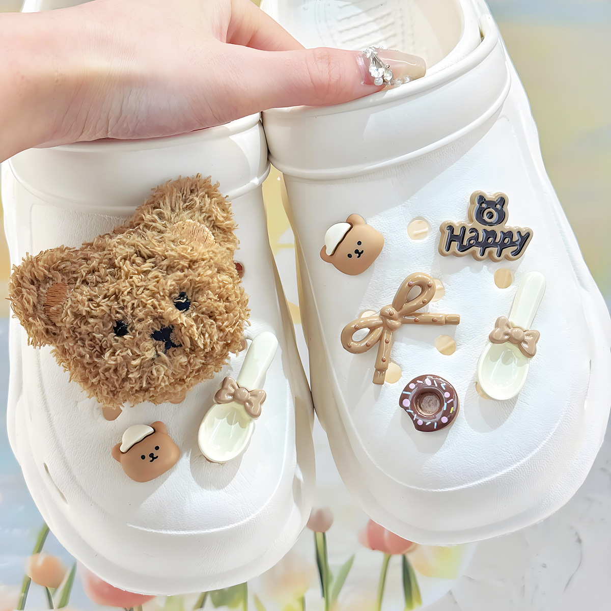 漫画風クマDIY樹脂製アクセサリー、スマホケース用パッチ、クロックス用飾り、靴の花、手作りヘアアクセサリー材料