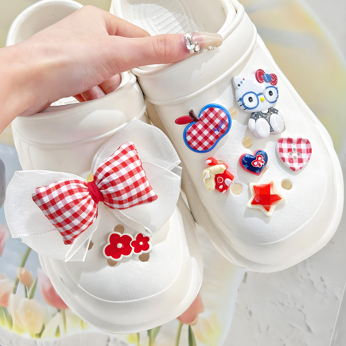颜色 10件套【不含鞋/扣】,大号布艺蝴蝶结68*40mm,中号小熊41*31mm,透色小熊26*19mm,透色五瓣花23*23mm,蝴蝶结熊头31*28mm,蝴蝶33*25mm,米咖樱桃24*24mm,糖果31*13mm,五角星19*19mm,missyou字牌33*20mm