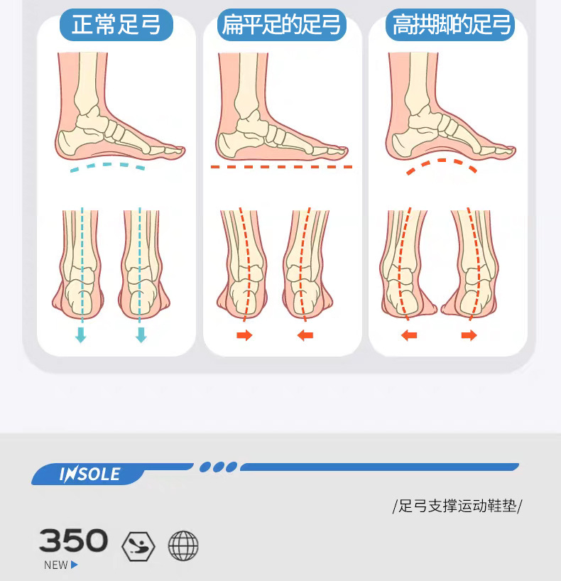 鲸鱼垫足弓鞋垫支撑减震动缓震XO型腿扁平足足外翻吸汗可裁剪塌陷