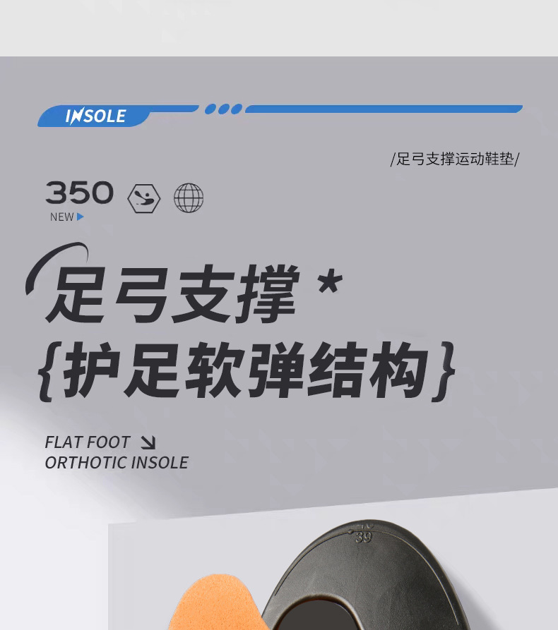 运动鲸鱼垫鞋垫足弓支撑减震运动回弹缓震吸汗透气久站不累矫正垫