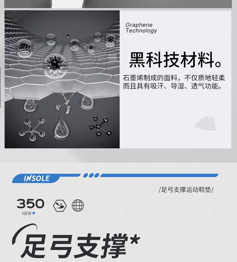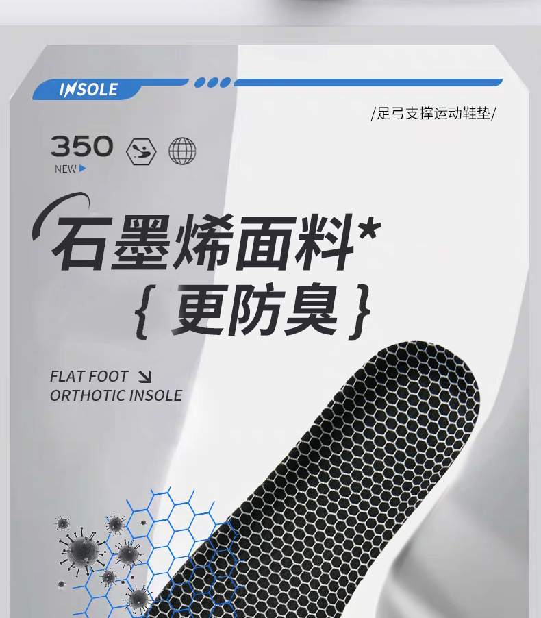 石墨烯足弓支撑防臭鞋垫男女舒适软底吸汗透气高弹减震久站不累脚
