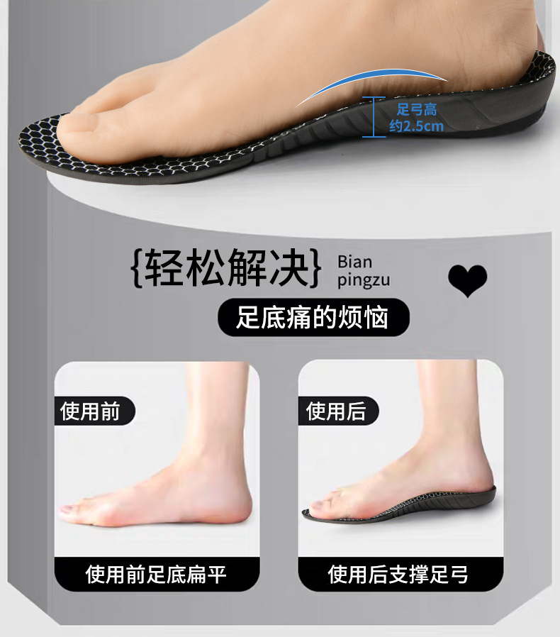 足弓支撑鞋垫扁平足纠正鞋垫OX型腿足内外翻矫正鞋垫石墨烯鞋垫