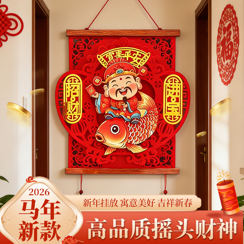 2026新款点头财神赚大钱过年装饰品客厅挂饰春节新年财神挂件装饰